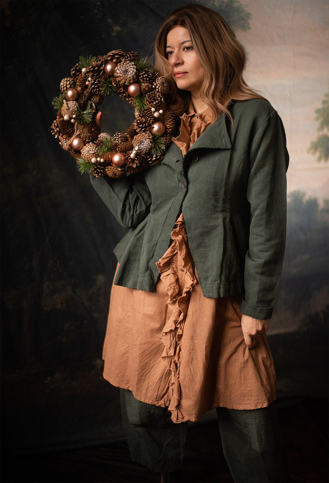 Button Through Coat with Feature Pockets in Pine Cloud - 2601208