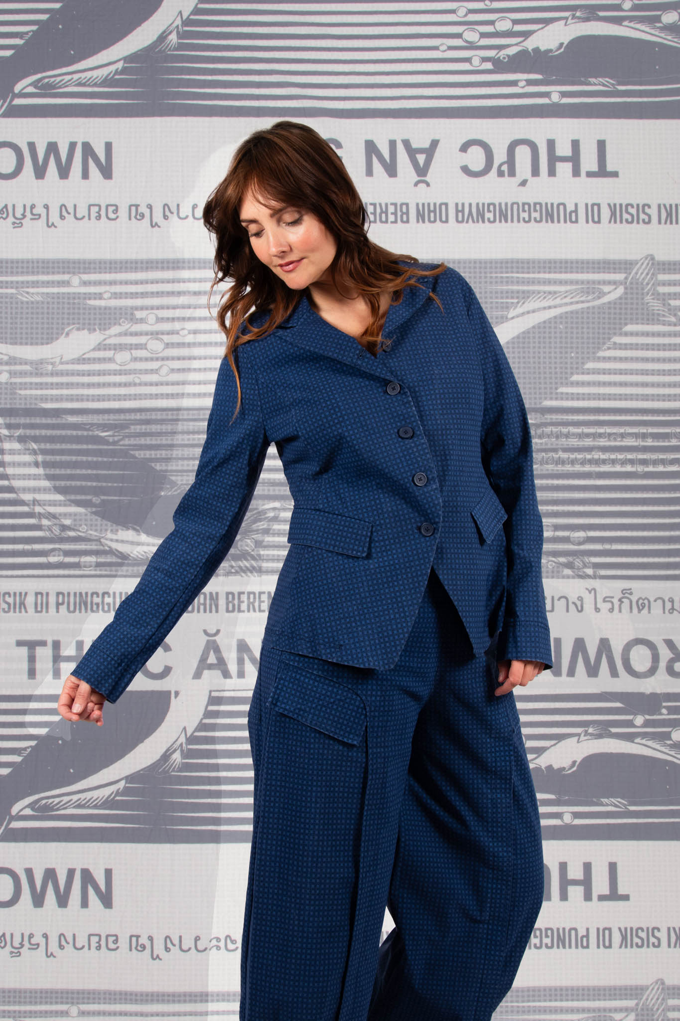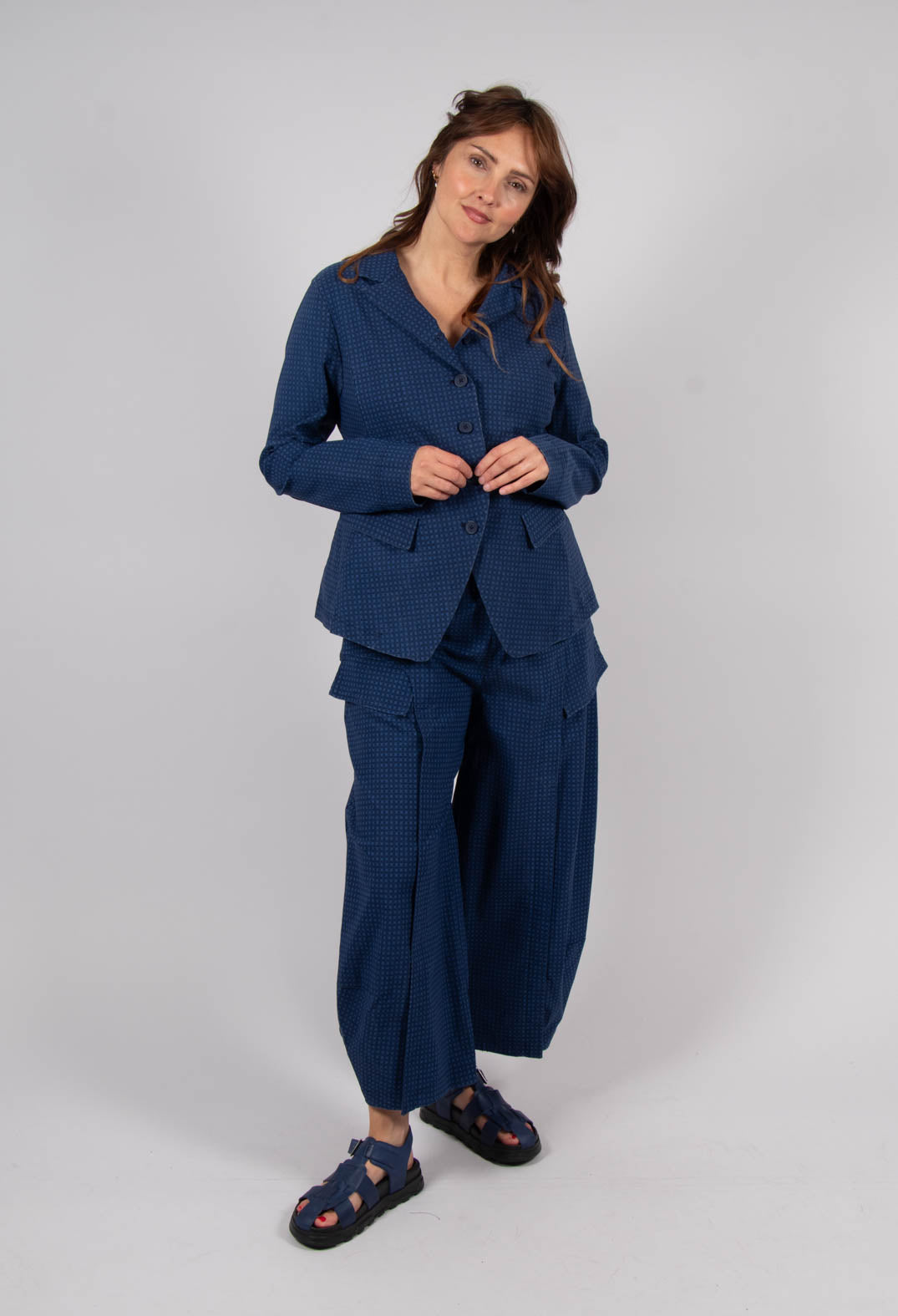 Tulip Hem Jacket in Navy Print