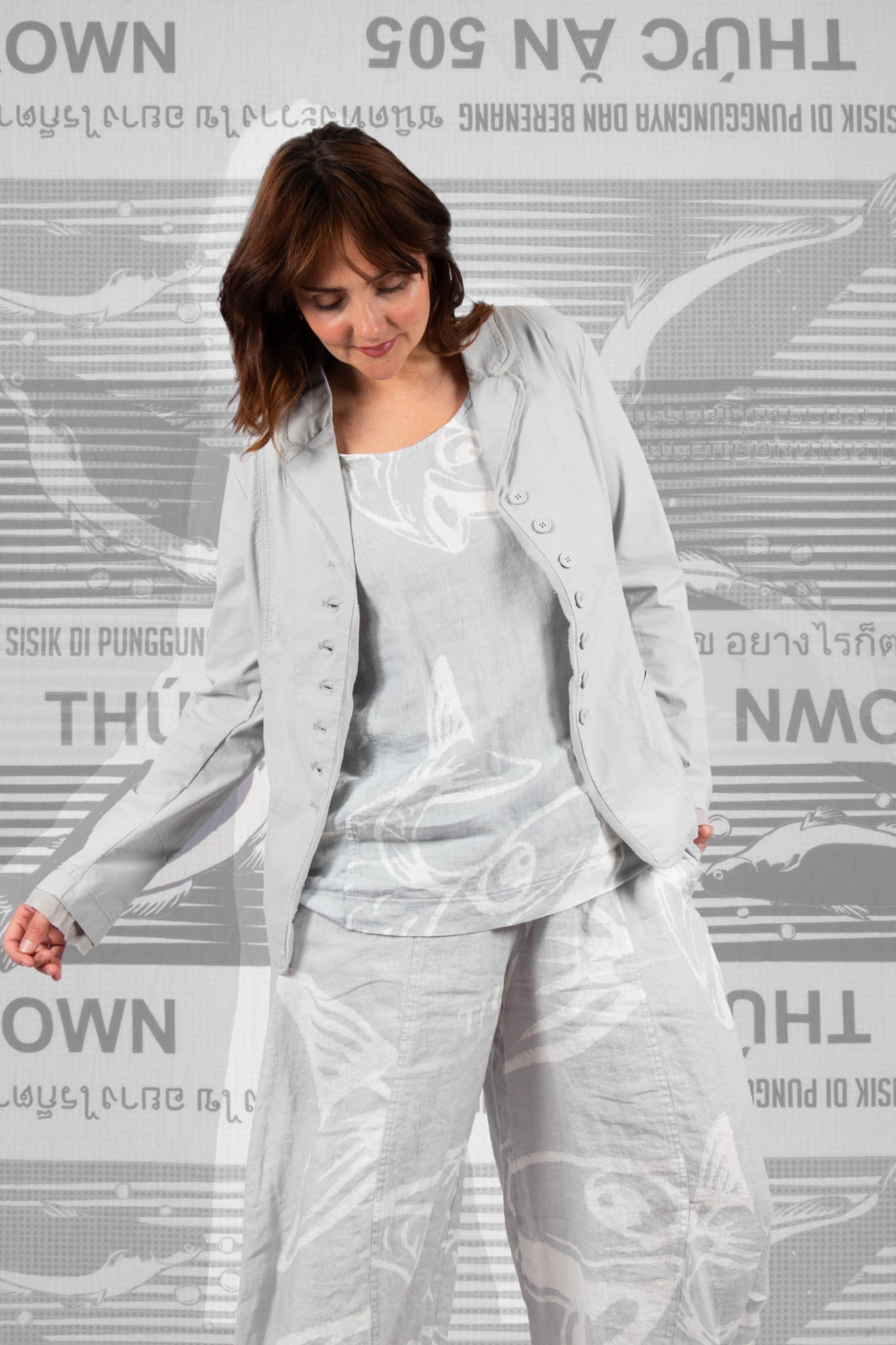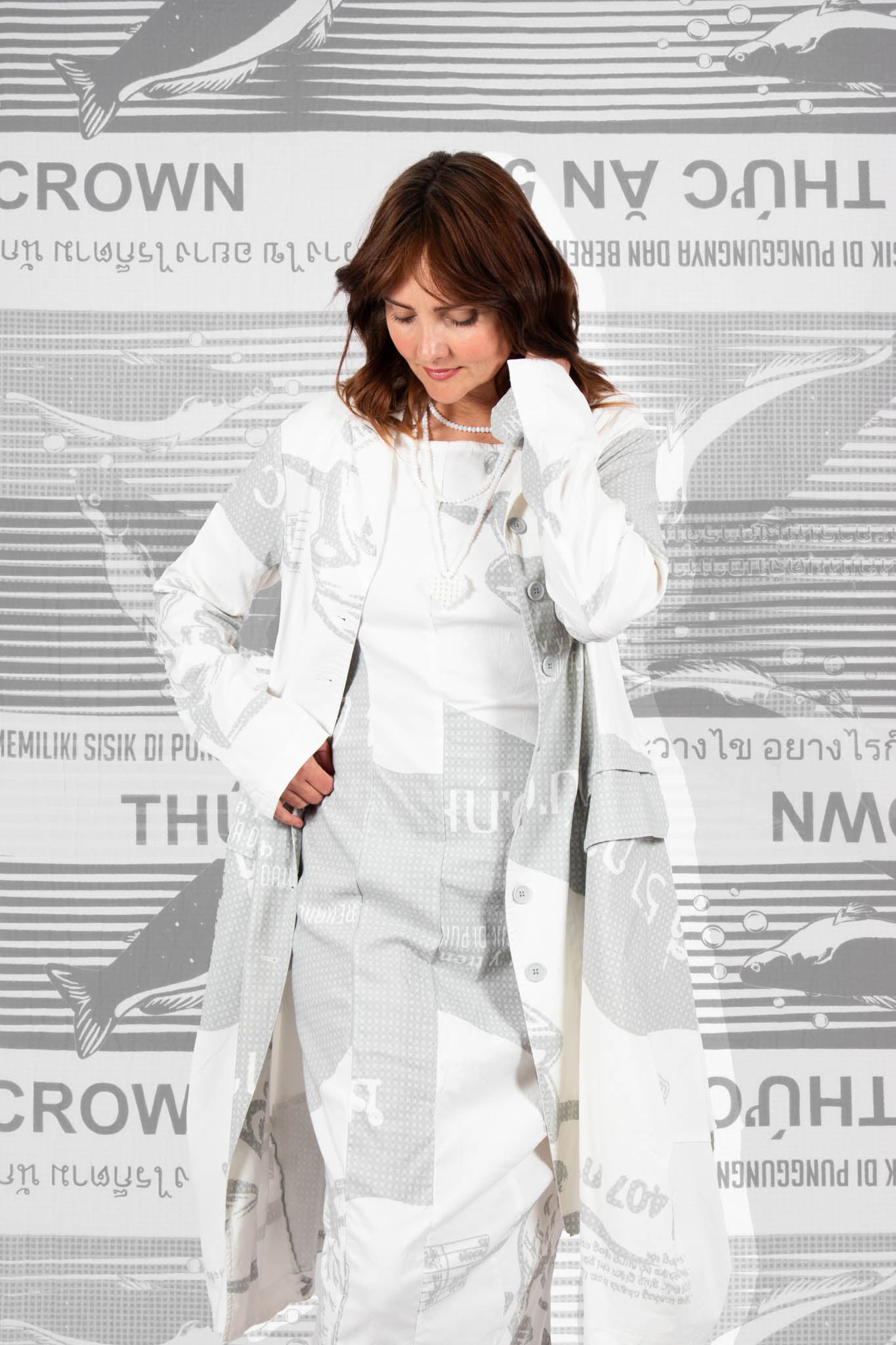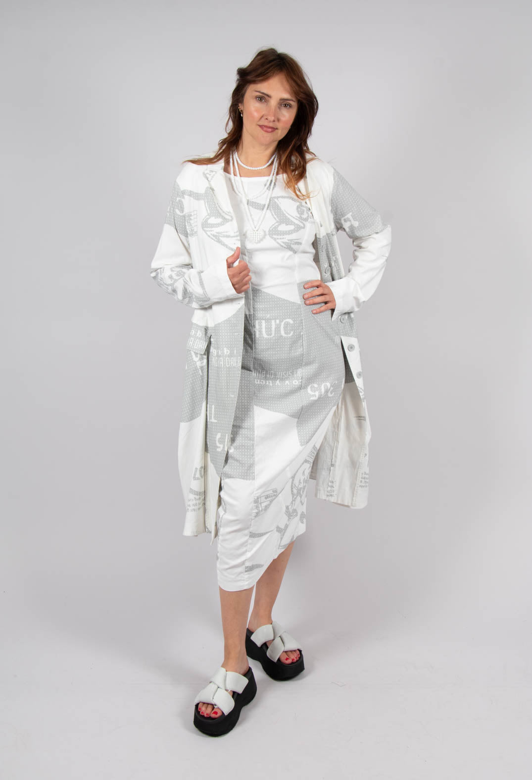 Tulip Hem Coat in Grey Print