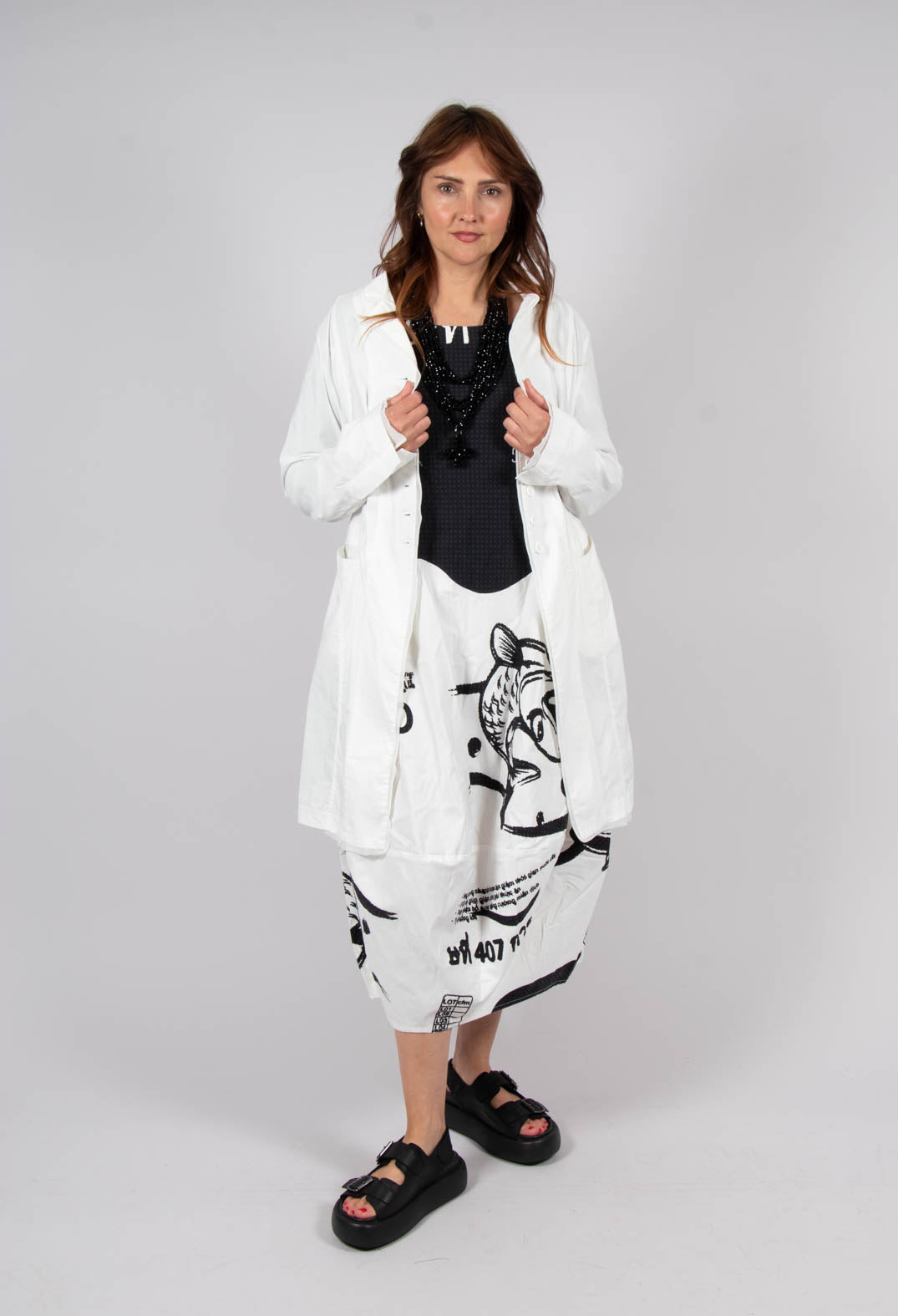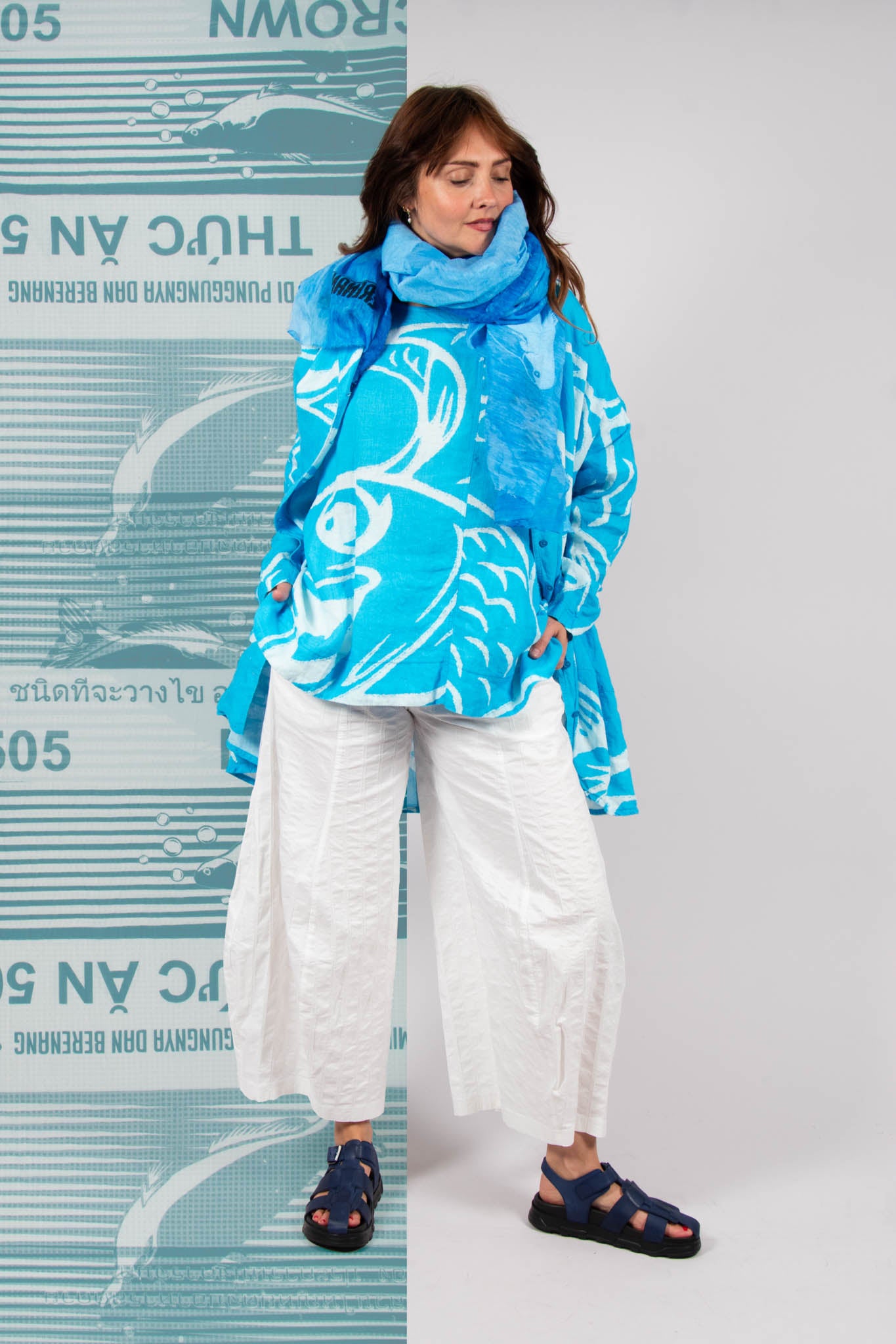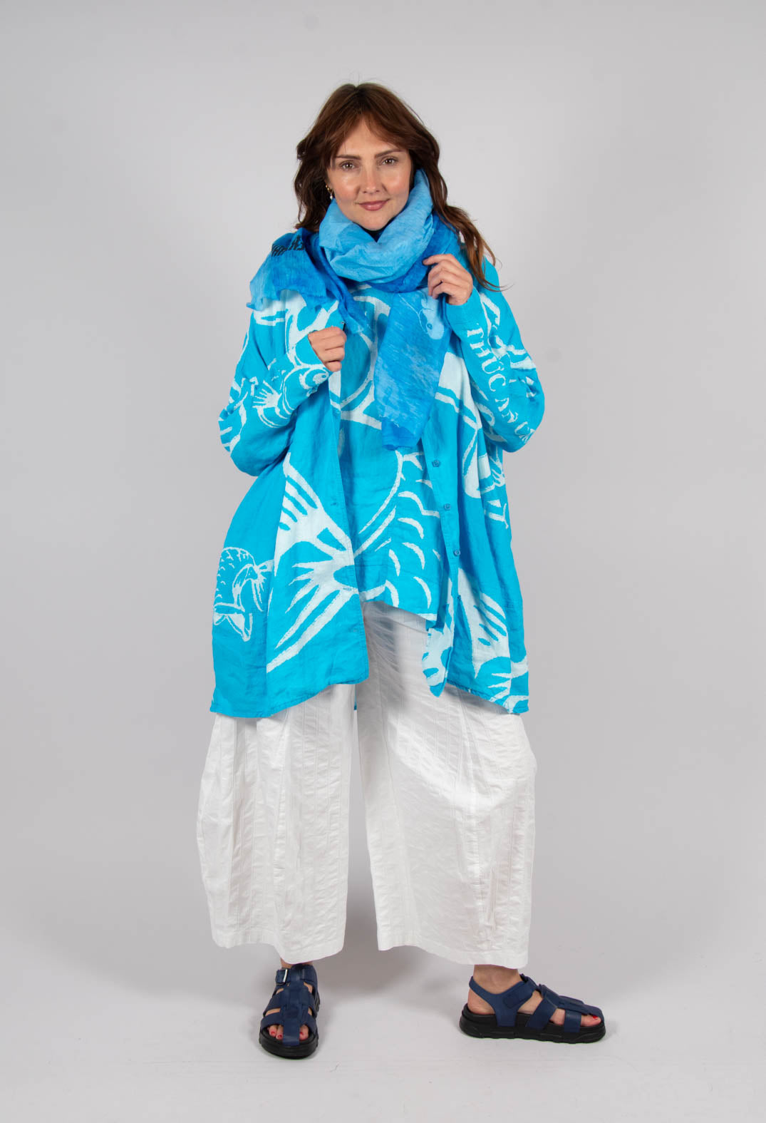 Shop Avant Garde silhouettes featuring bright, bold prints from the SS25 Rundholz Black Label collection, so you can stand out from the crowd in style! Explore this top German designer's latest print for Summer, featuring aquatic glyphs placed over top shades of Aqua, Navy and Monochrome, with matching scarves, bags and shoes to complete your look! With many styles of balloon dresses, capri trousers, floaty Summer shirts and much more to choose from, curate your wardrobe to fit your perfect style this season!