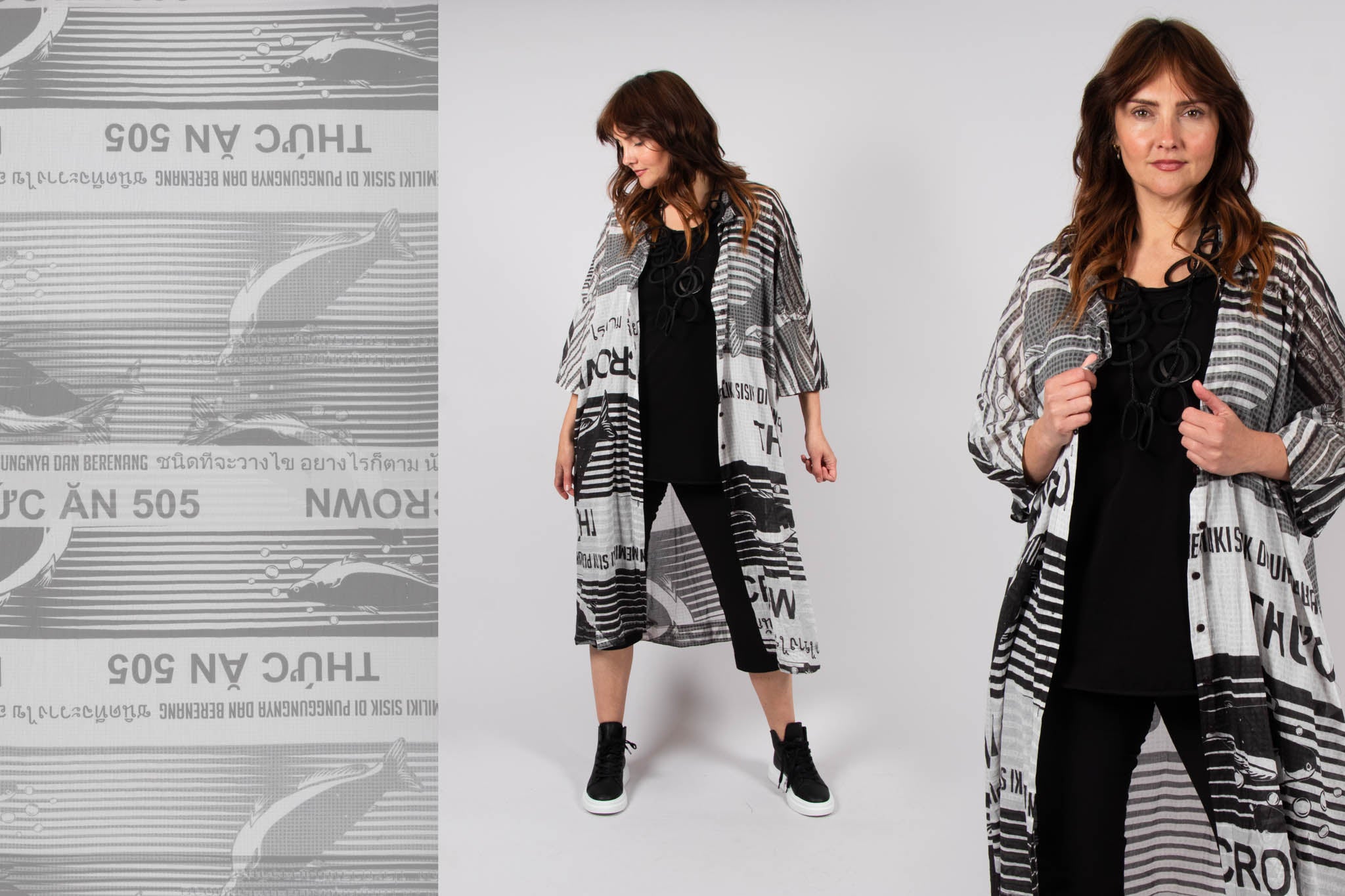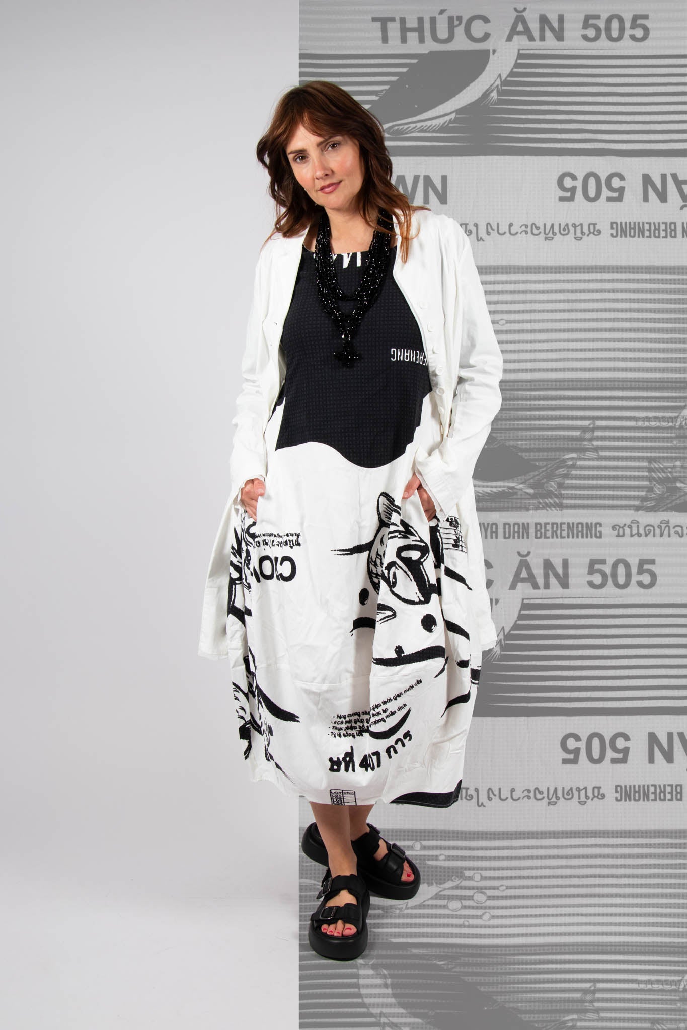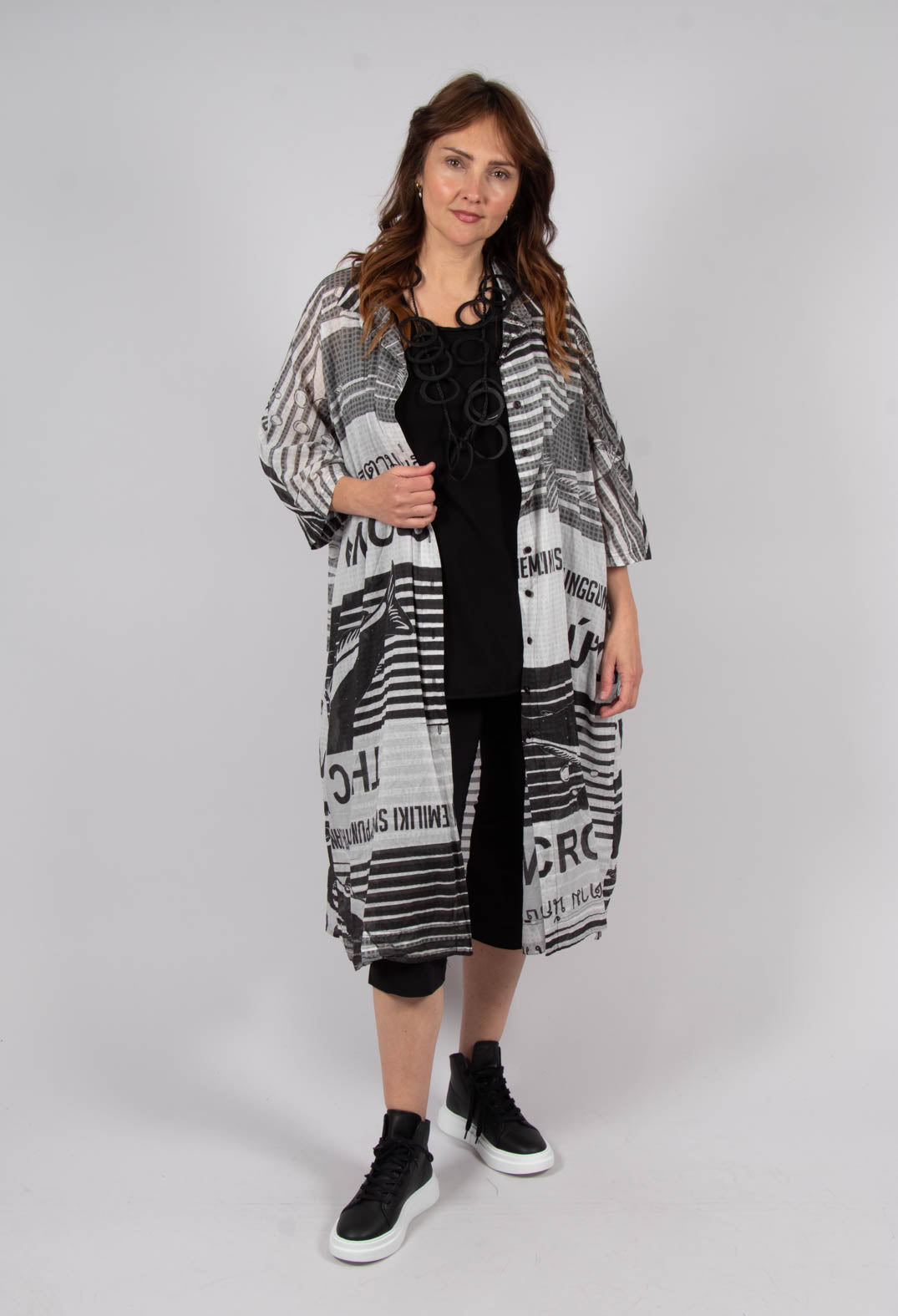 Shop Avant Garde silhouettes featuring bright, bold prints from the SS25 Rundholz Black Label collection, so you can stand out from the crowd in style! Explore this top German designer's latest print for Summer, featuring aquatic glyphs placed over top shades of Aqua, Navy and Monochrome, with matching scarves, bags and shoes to complete your look! With many styles of balloon dresses, capri trousers, floaty Summer shirts and much more to choose from, curate your wardrobe to fit your perfect style this season!