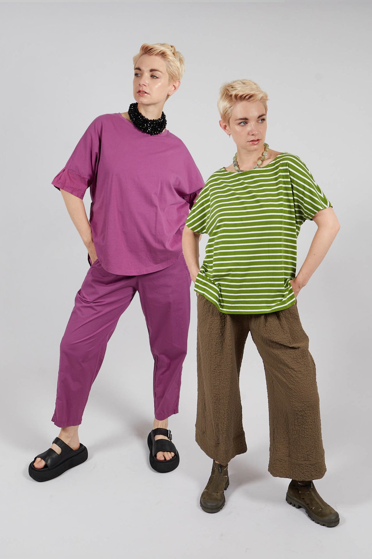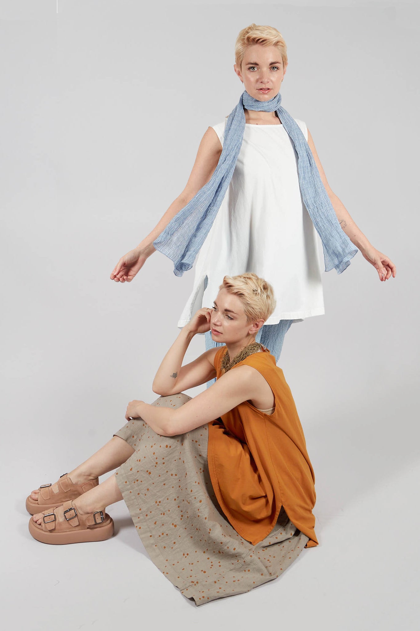 Jump into our latest editorial and explore the fashion of the Mama B clothing line, including casual pieces that are ideal for a comfortable yet, luxurious look. Their exquisite fabrics, stunning hues, and carefree patterns are hallmarks of their designer women's apparel. Made in Italy, Mama B's classic items are always of the greatest calibre.
