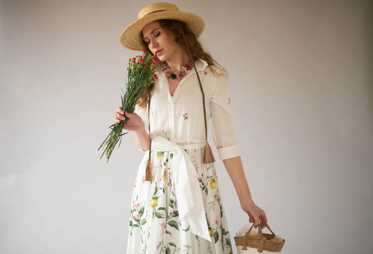 Explore our colleciton of elegant Summer dresses, skirts and wide leg trousers by Italian high-end designer, Lavi Couture. With fine prints, pastel shades and classic silhouettes, these flattering garments are perfect for Springtime picnics, Summer strolls and warm weather goodness. Finish off your look with a straw hat by Lavi Couture and espadrille sandals from Chie Mihara.