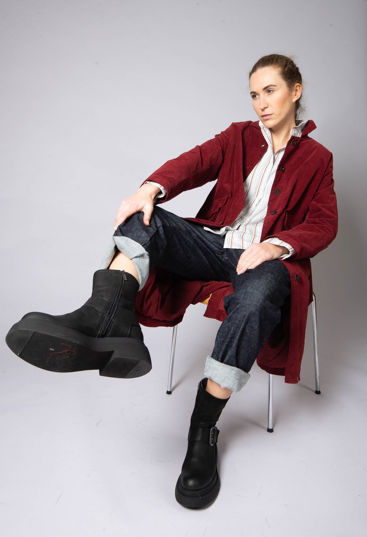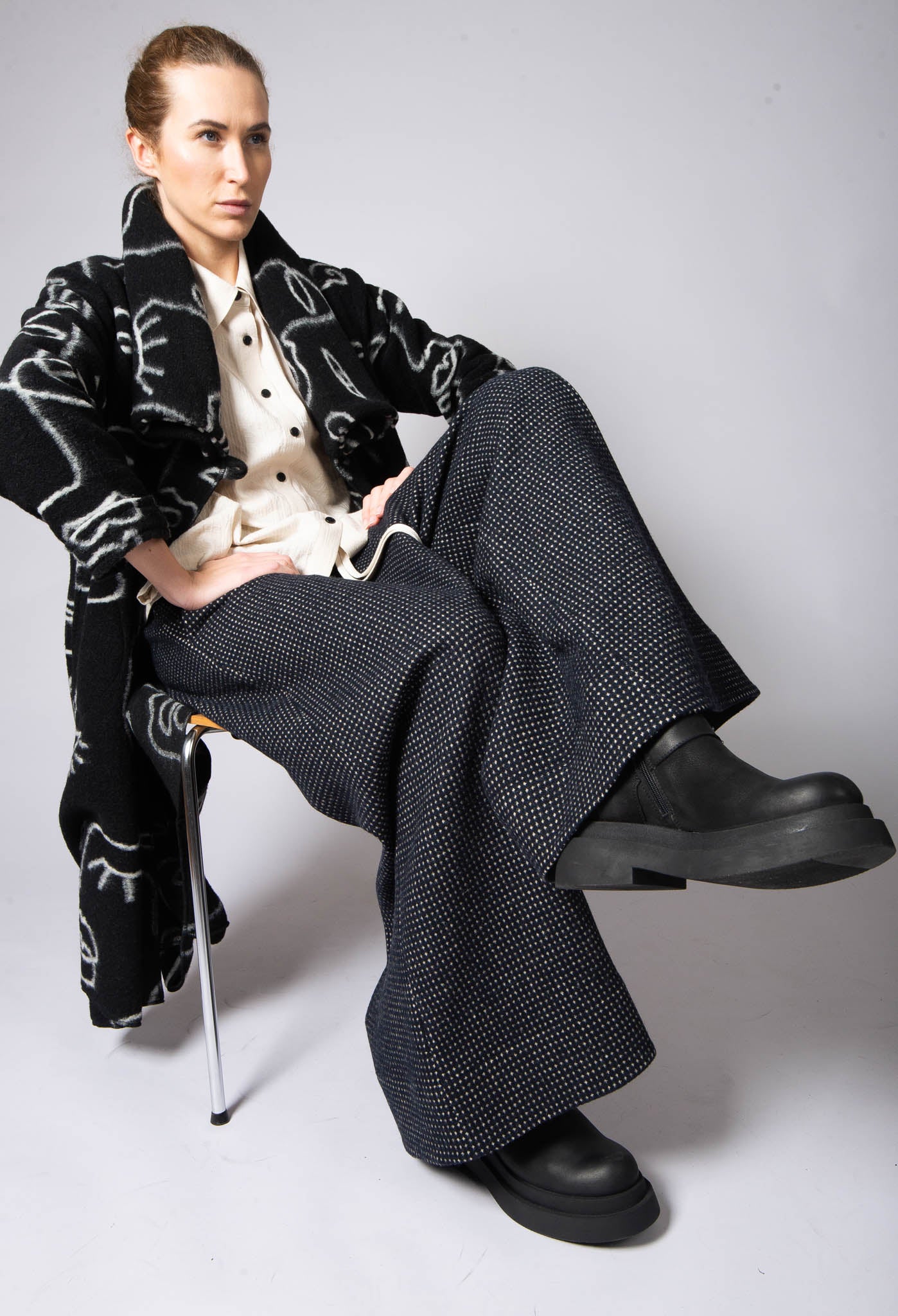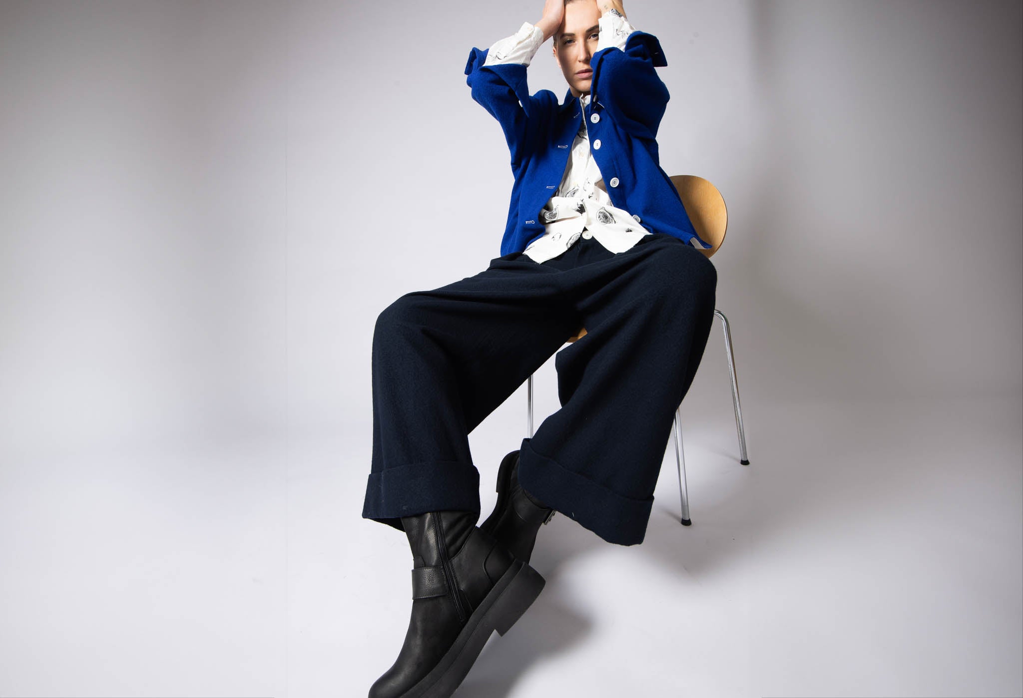 Explore our androgynous looks featuring Hannoh Wessel and Aequamente. Shop button up shirts, rolled hem trousers, chunky black Lofina boots, and comfortable coats, all in timeless, iconic silhouettes. Get inspired below!