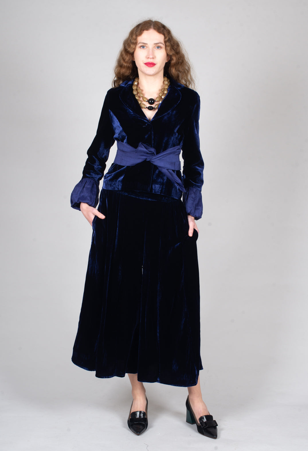 Bianco Levrin's velvets are made from 100% high-quality Italian silk, with delicate embroidery and beautiful handmade details. Bianco Levrin have been creating with silk for more then 20 years, with a commitment to using only the finest materials for their velvet jackets, midi dresses, and trousers for women.