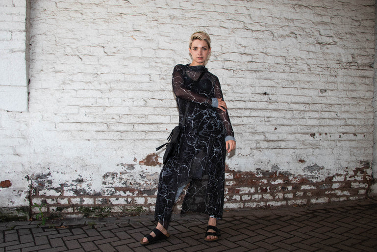 A unique insight allowed the creative crew of the company to carry the concept on a new irreverent, bold and uncompromising collection. All black overlapping shades let us glimpse cutting-edge technologies prints and a deep research on shapes and fabrics, from cotton to leather.