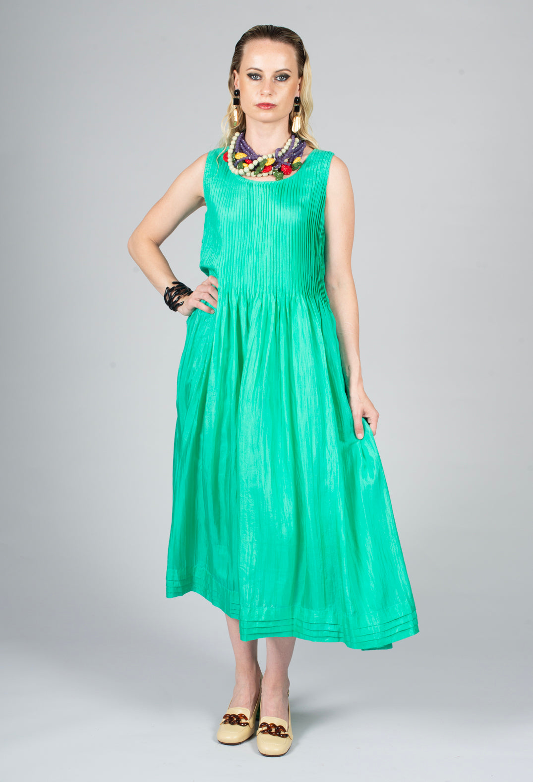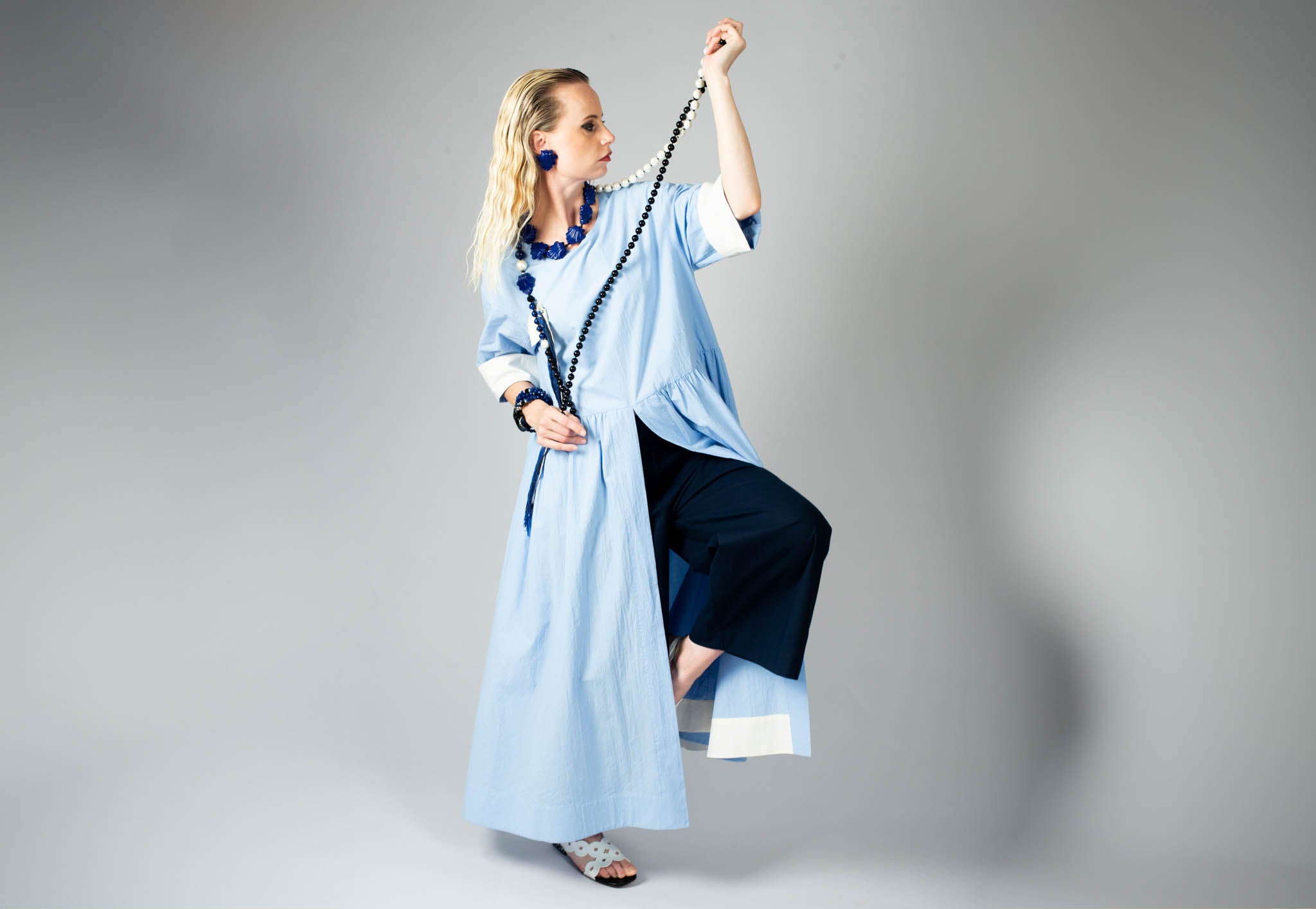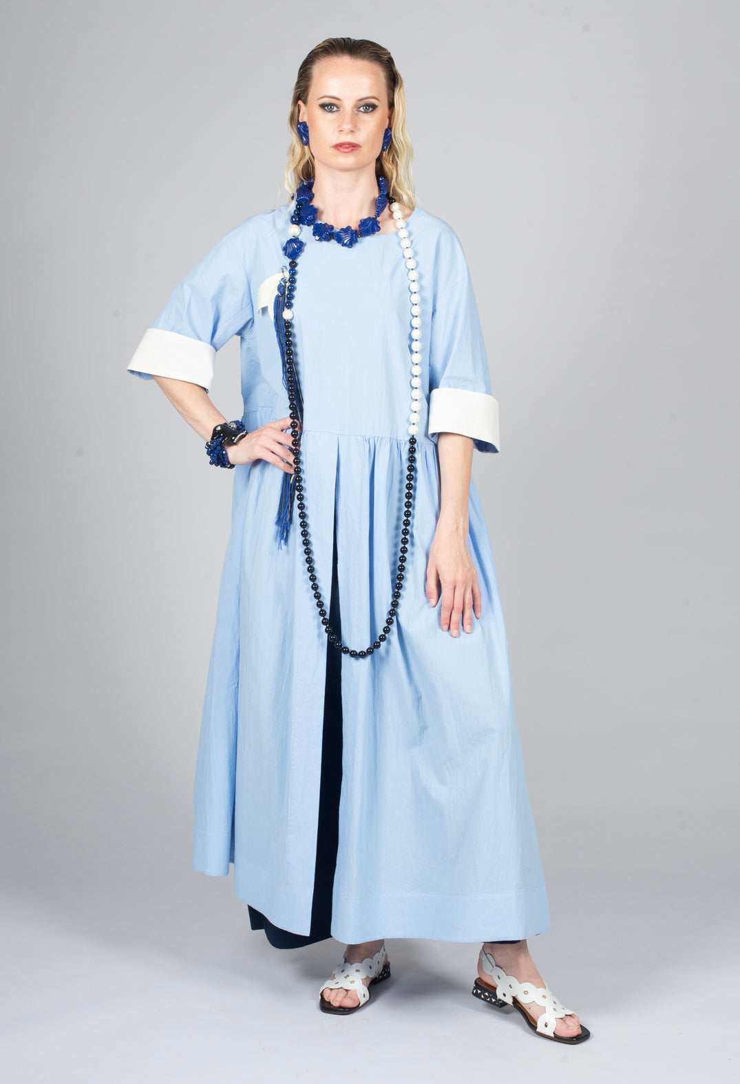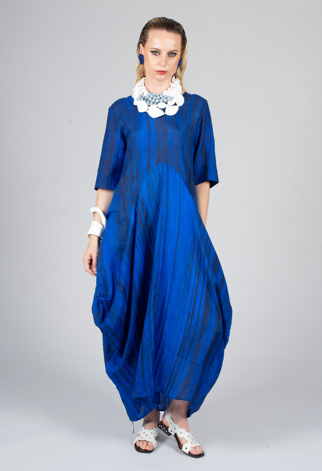 Miriam Dress Round Neck in Blue and Cobalt