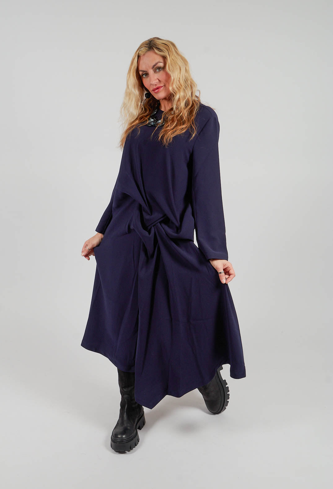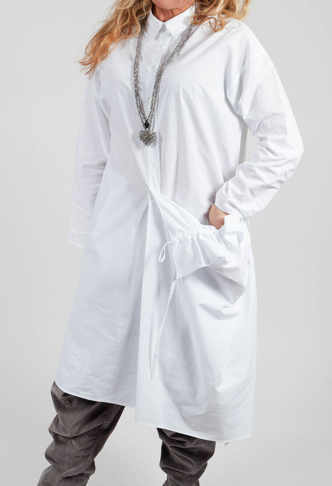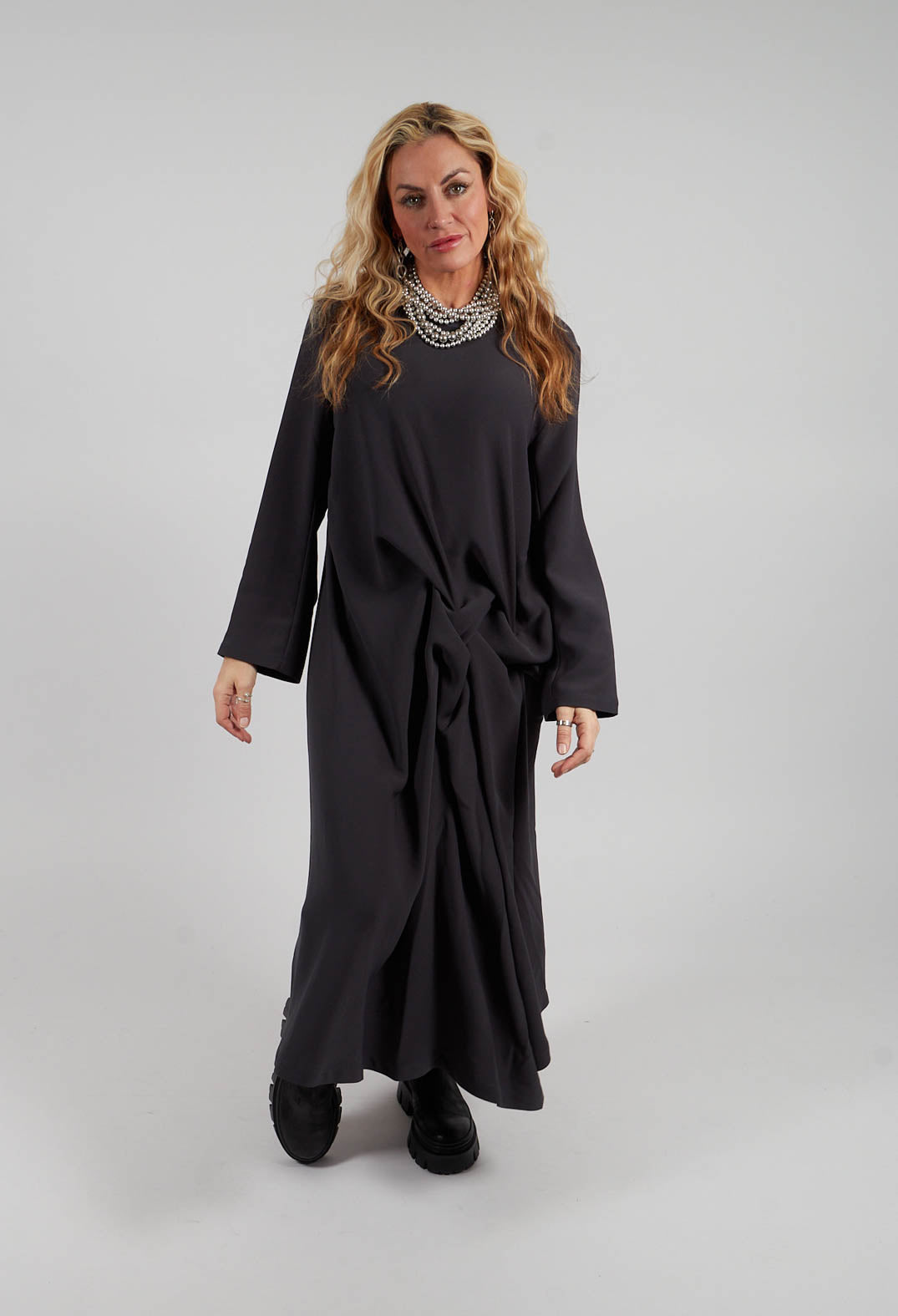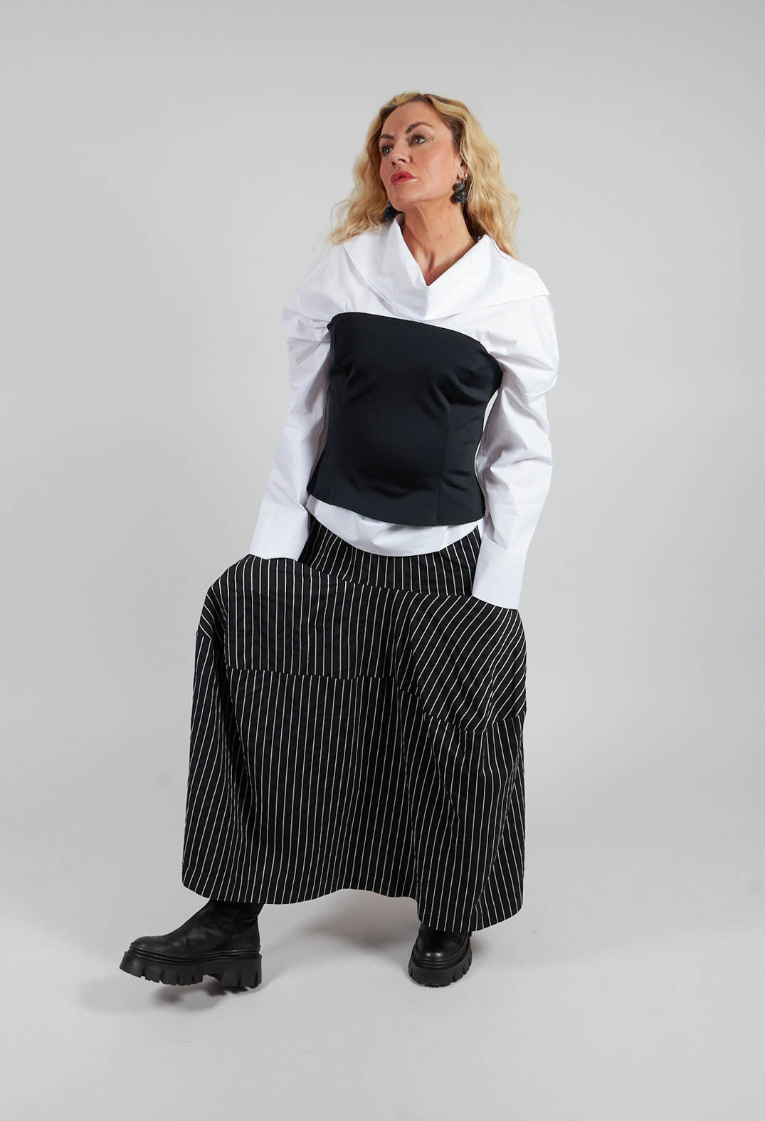 Işık Özgür’s designs lend themselves effortlessly to layered, modern looks that balance structure with softness. Start with an elevated transition into evening, opt for a tailored trouser paired with an asymmetric top—this combination speaks to Özgür’s love of architectural shapes and movement. Add a statement jacket with exaggerated lines or textured fabric finishes the look, bringing a sense of quiet drama.