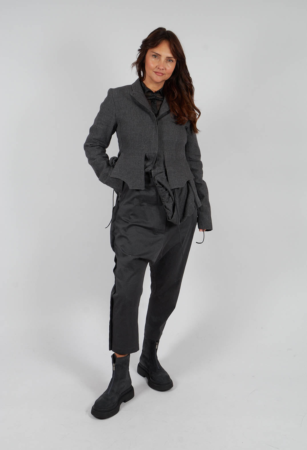 Drop Crotch Trousers with Ruched Leg in Turf - 1210109