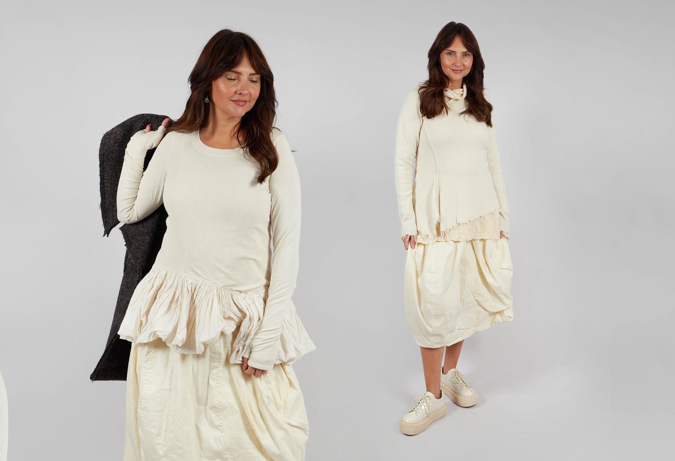 Long Sleeve T-Shirt with Peplum Hem in Bone - 1180505