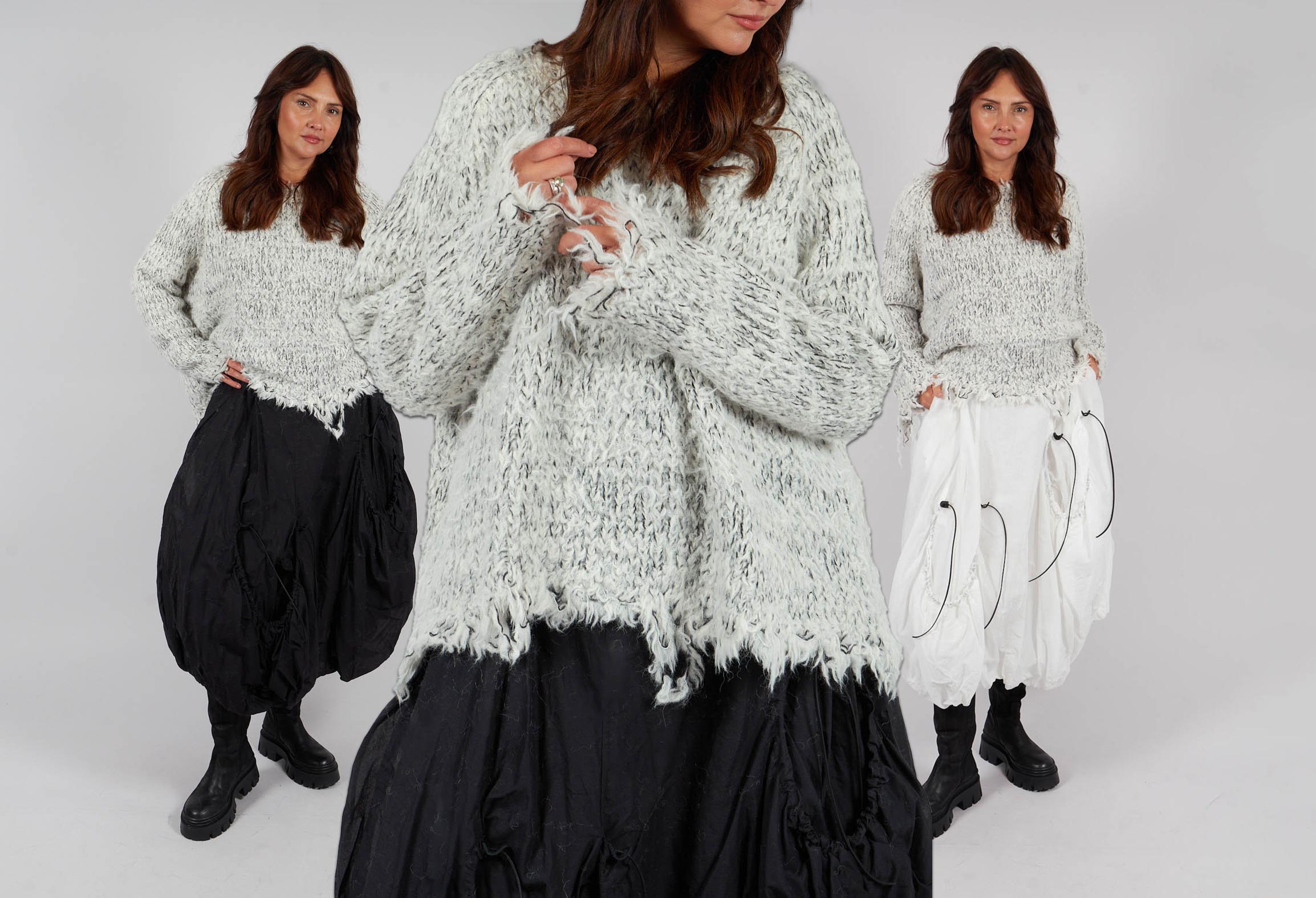 The Rundholz line, which features superb fabrics, expert tailoring, and unique designs, is a monument to luxury. This season's palette emphasises a sophisticated neutrality that highlights the materials' tactile charm. Each piece is elevated by skilfully distressed features, including our range of cosy-soft knit jumpers, coats and chunky, cashmere scarves in this Rundholz Mainline collection.