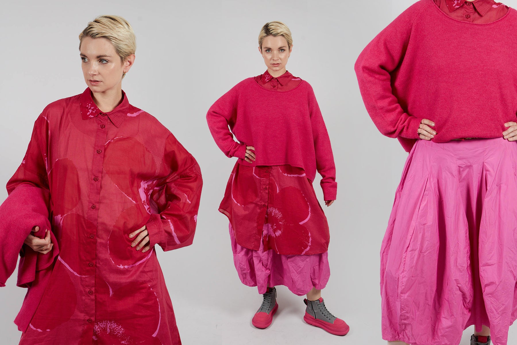 The Rundholz Black Label AW25 collection hosts a mix and match variety of pink, red, and grey shades, alongside their iconic black pieces. Mixing pinks & greys, and reds & blacks is thoroughly encouraged for the adventurous, stylish woman!