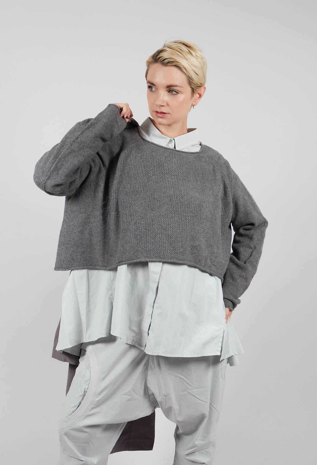 Drop Crotch Trousers with Circular Pocket Detail in Light Grey - 3630110