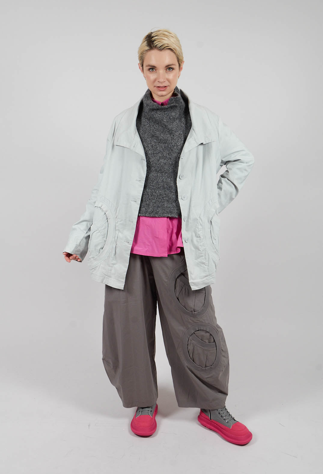High Neck Jacket with Circular Pockets in Light Grey - 3631114