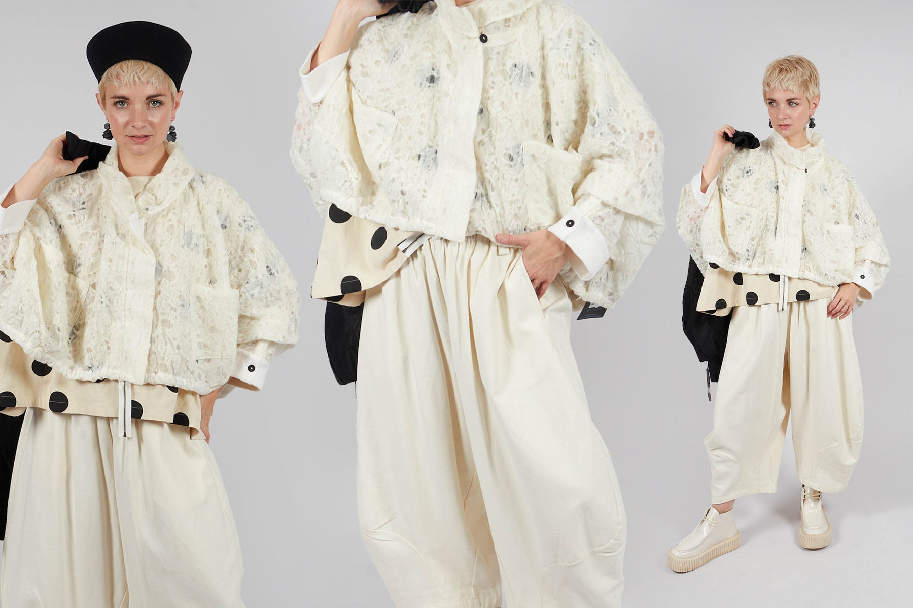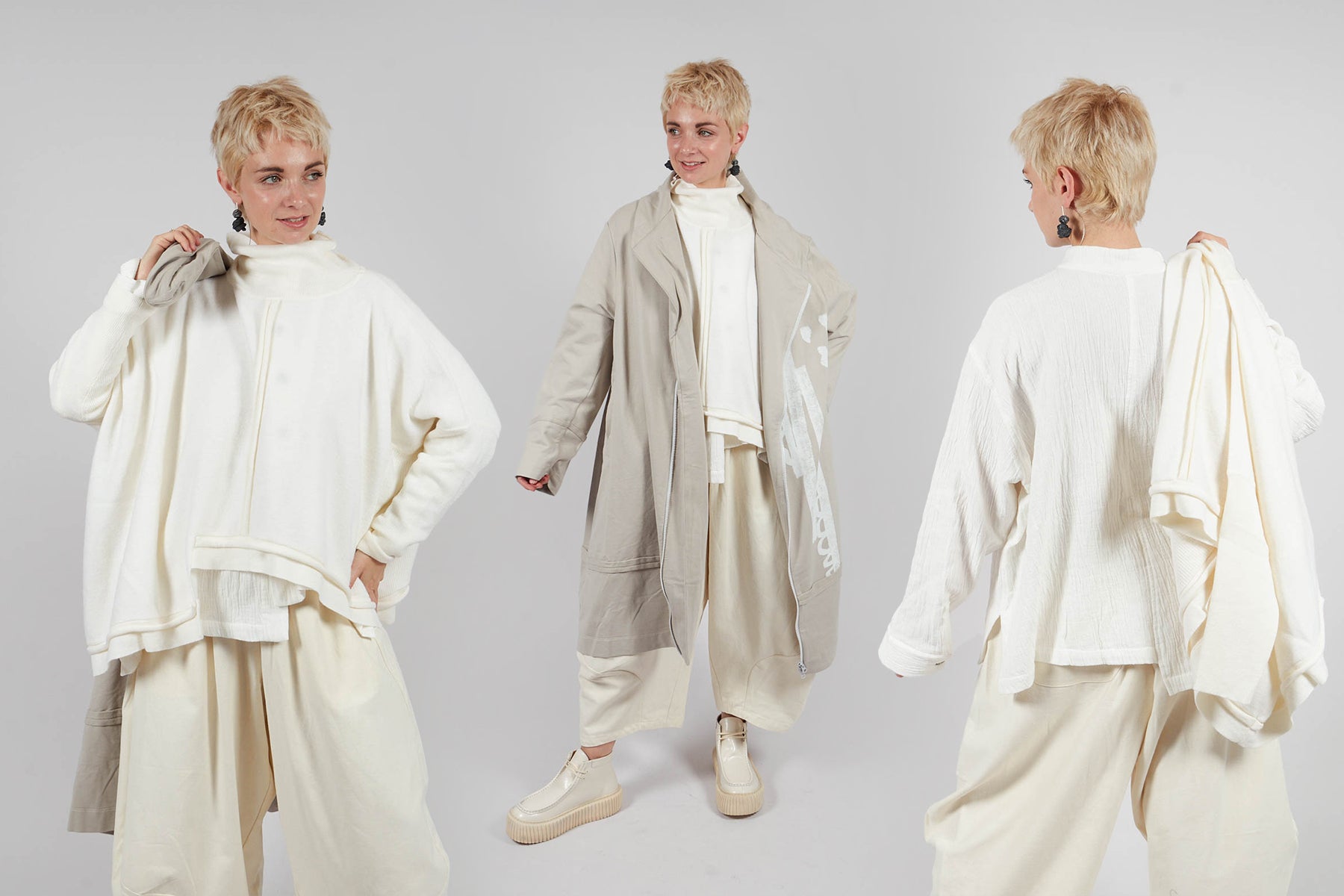 Explore a world of edgy, avant garde fashion with our collection of pieces from Japanese designer Moyuru. Bright reds, rich creams, and deep blacks make up the stunning looks from this one of a kind brand, all paired with experimental and intriguing patterns and prints. Shop wide leg culottes, soft jumpers, interesting shirts and warm coats, all online now.