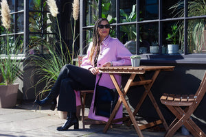 Printed Collarless Cropped Jacket in Charcoal
