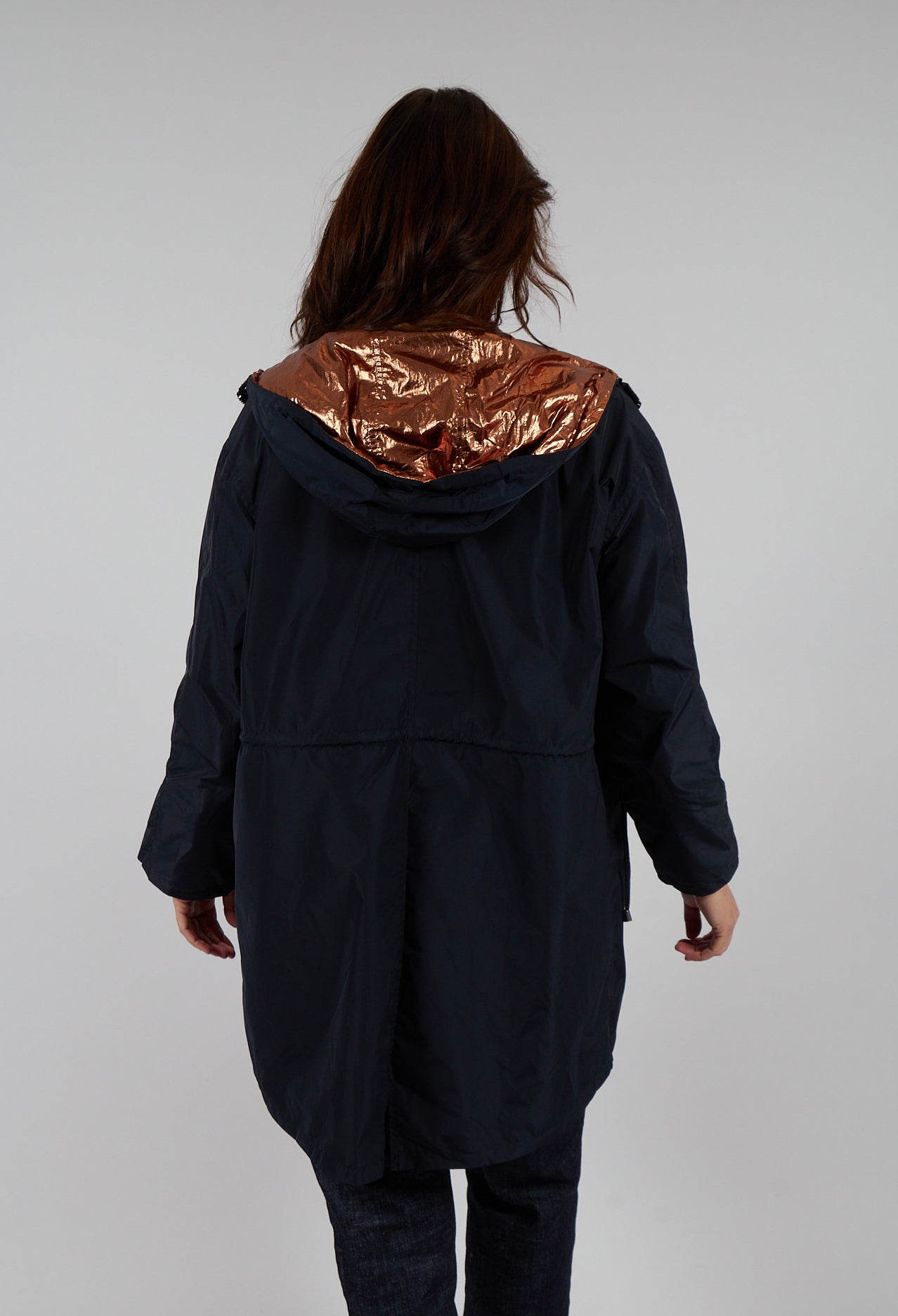 Reversible Lightweight Raincoat in Navy and Bronze by Nijii