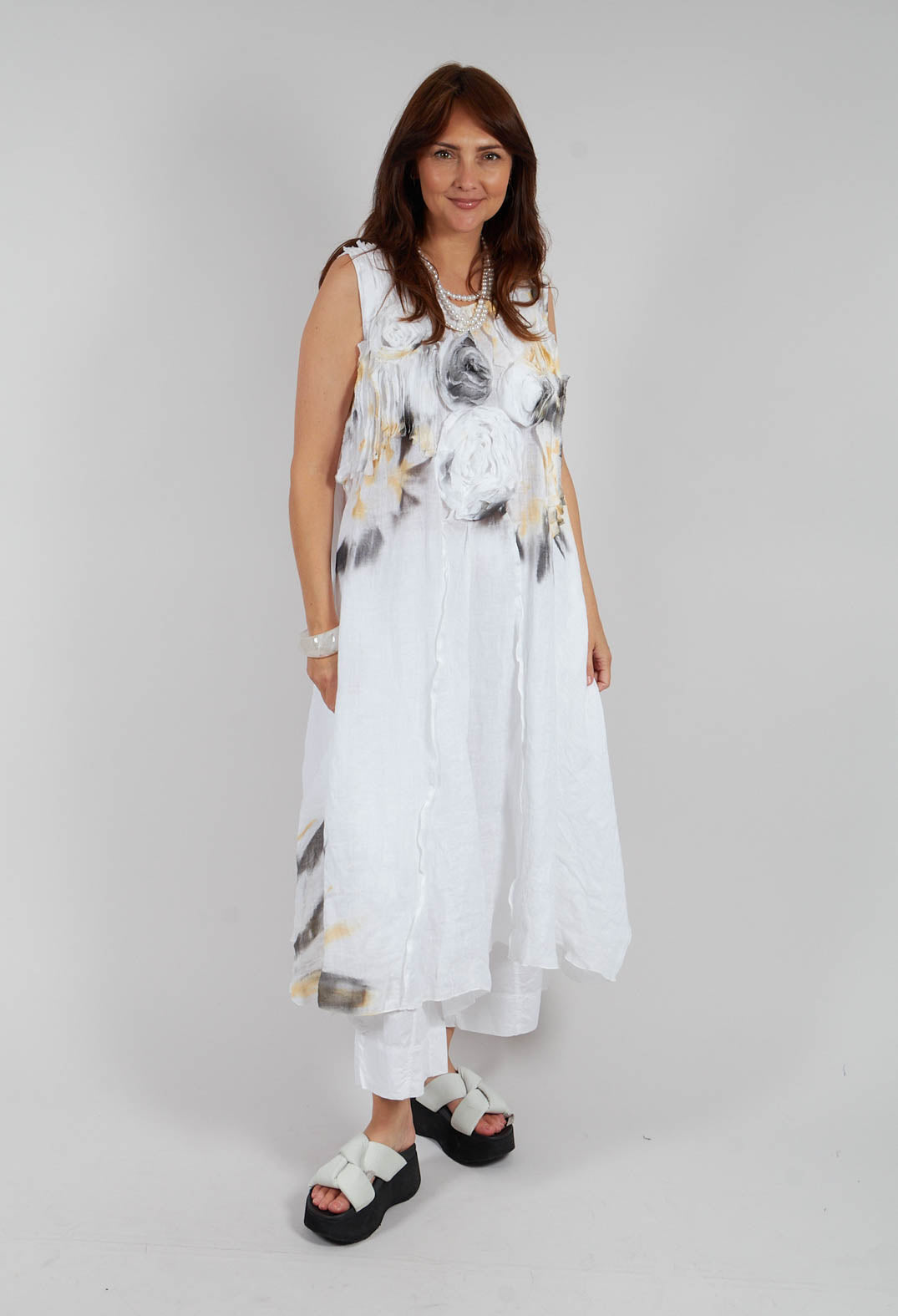 3D Flower and Print Dress in White
