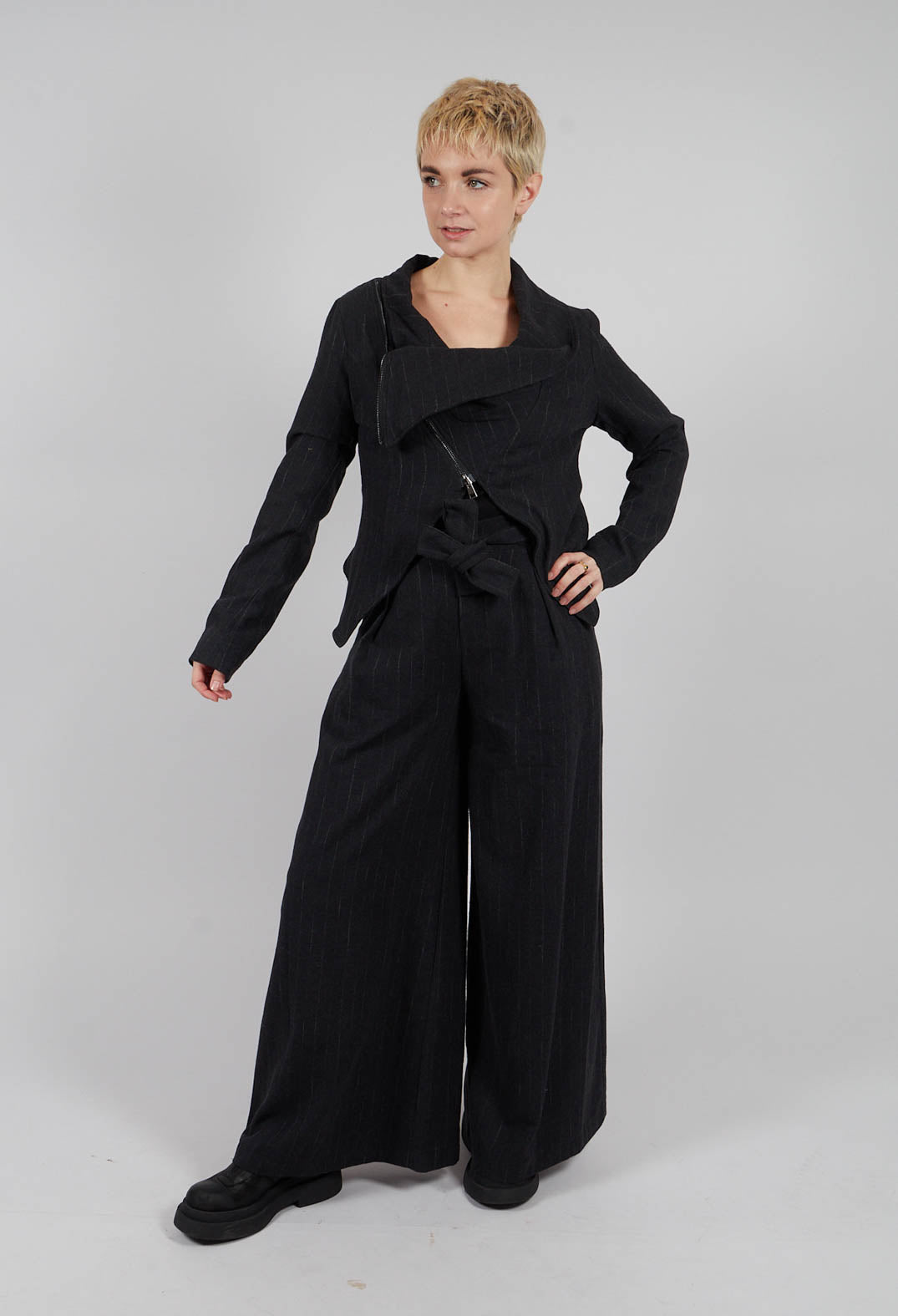 Asymmetric Flannel Jacket in Black Pinstripe by La Haine