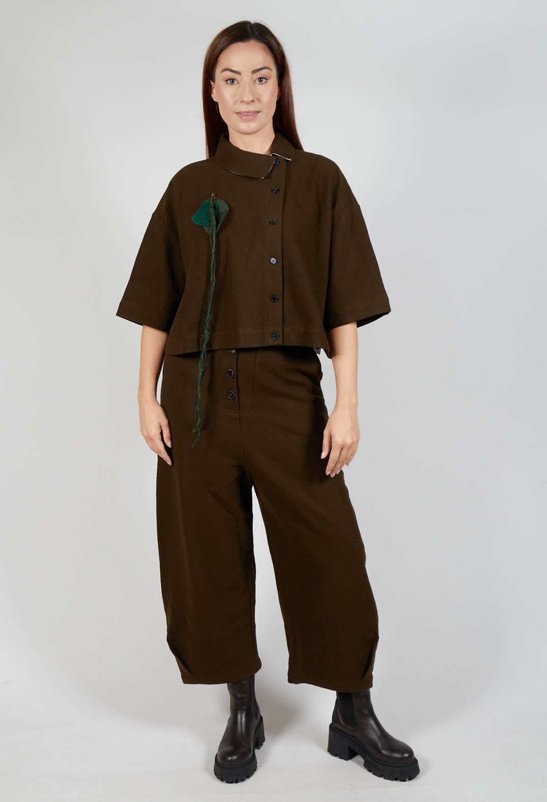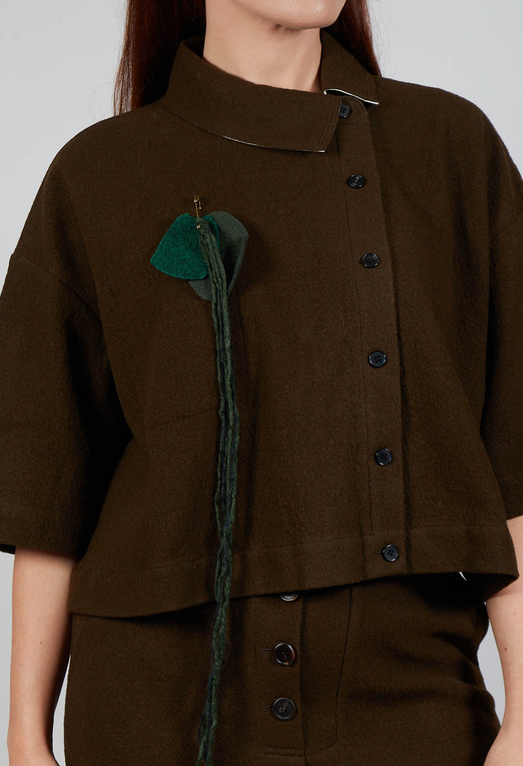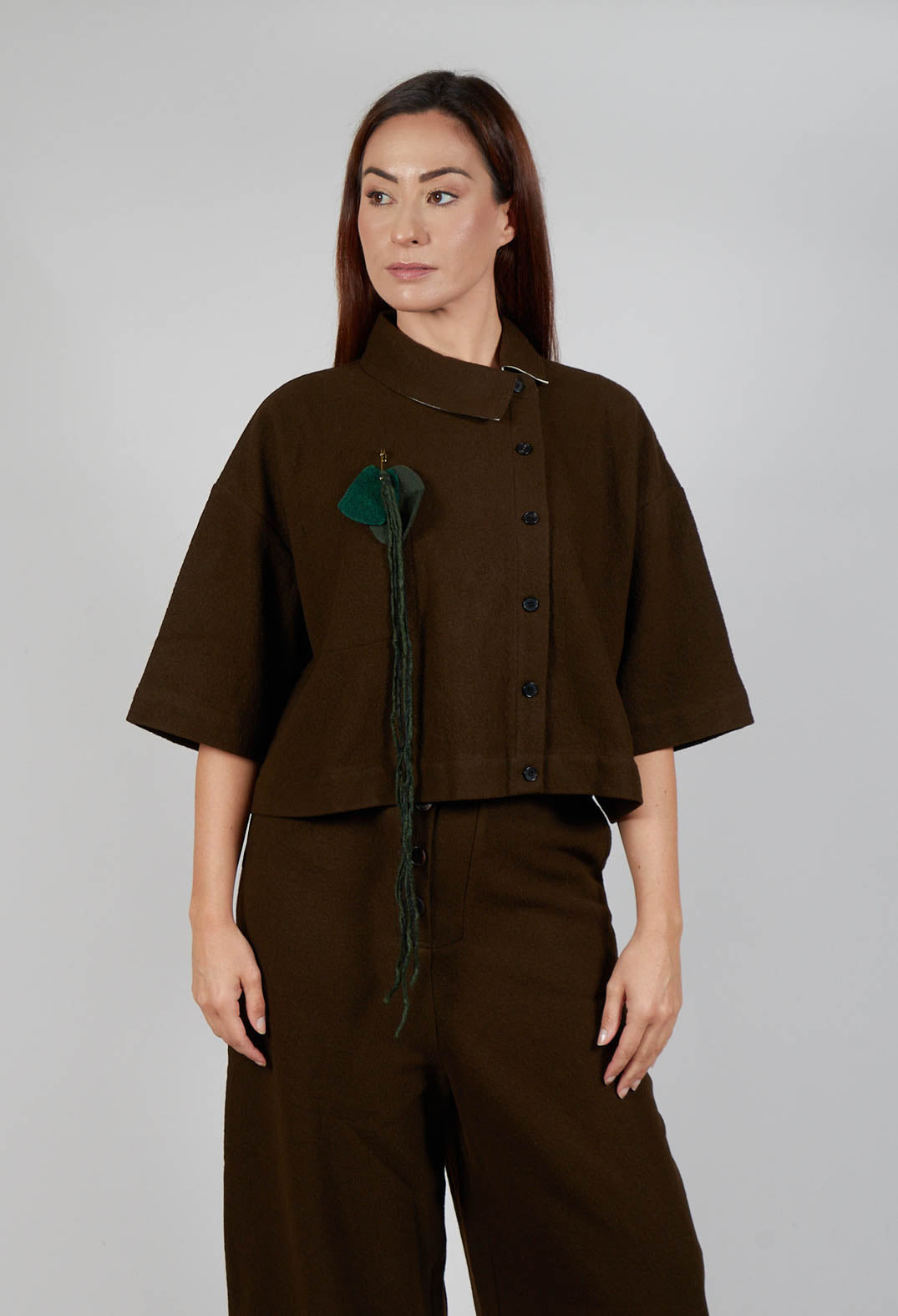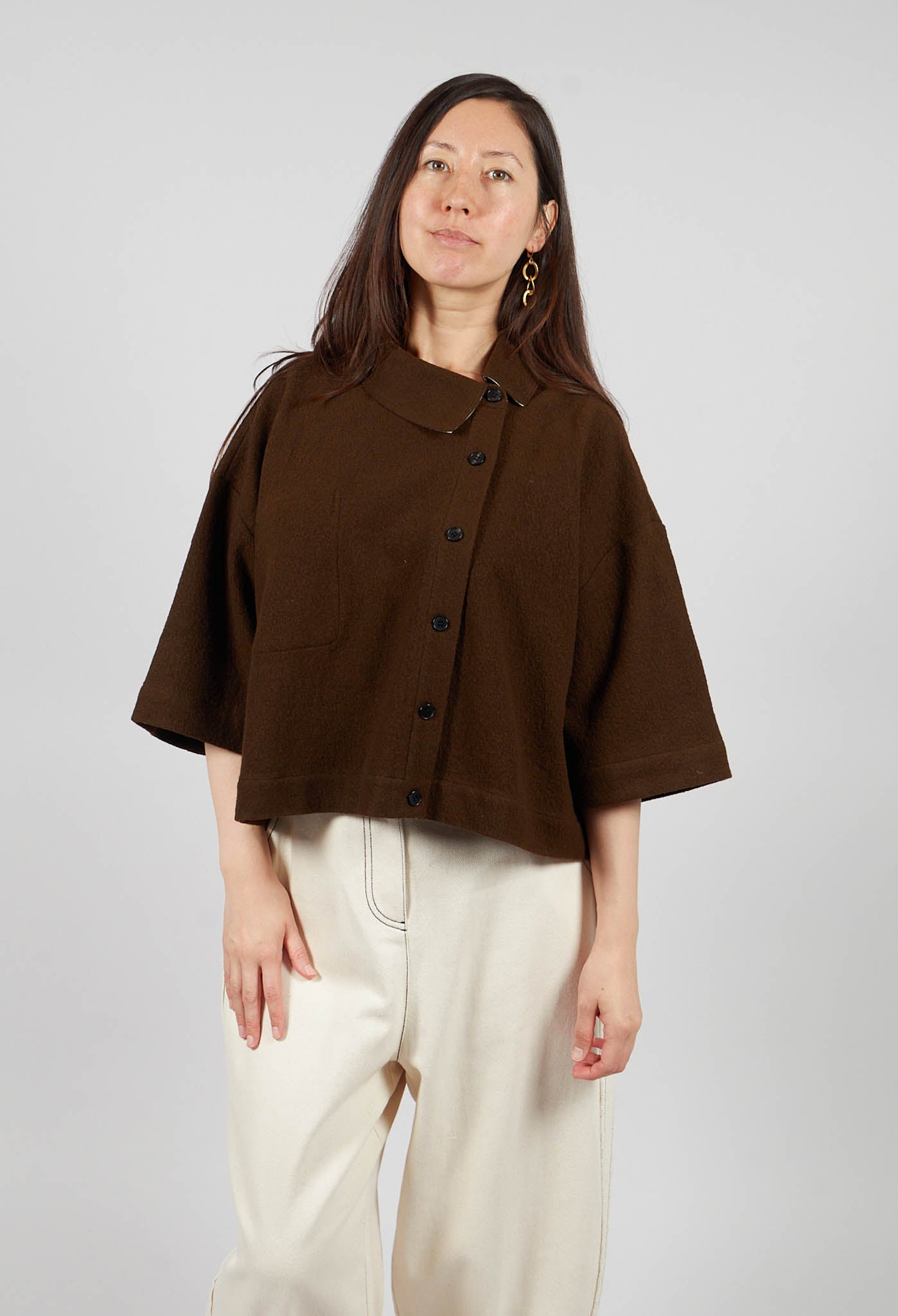 Asymmetric Point Collar Shirt in Brown
