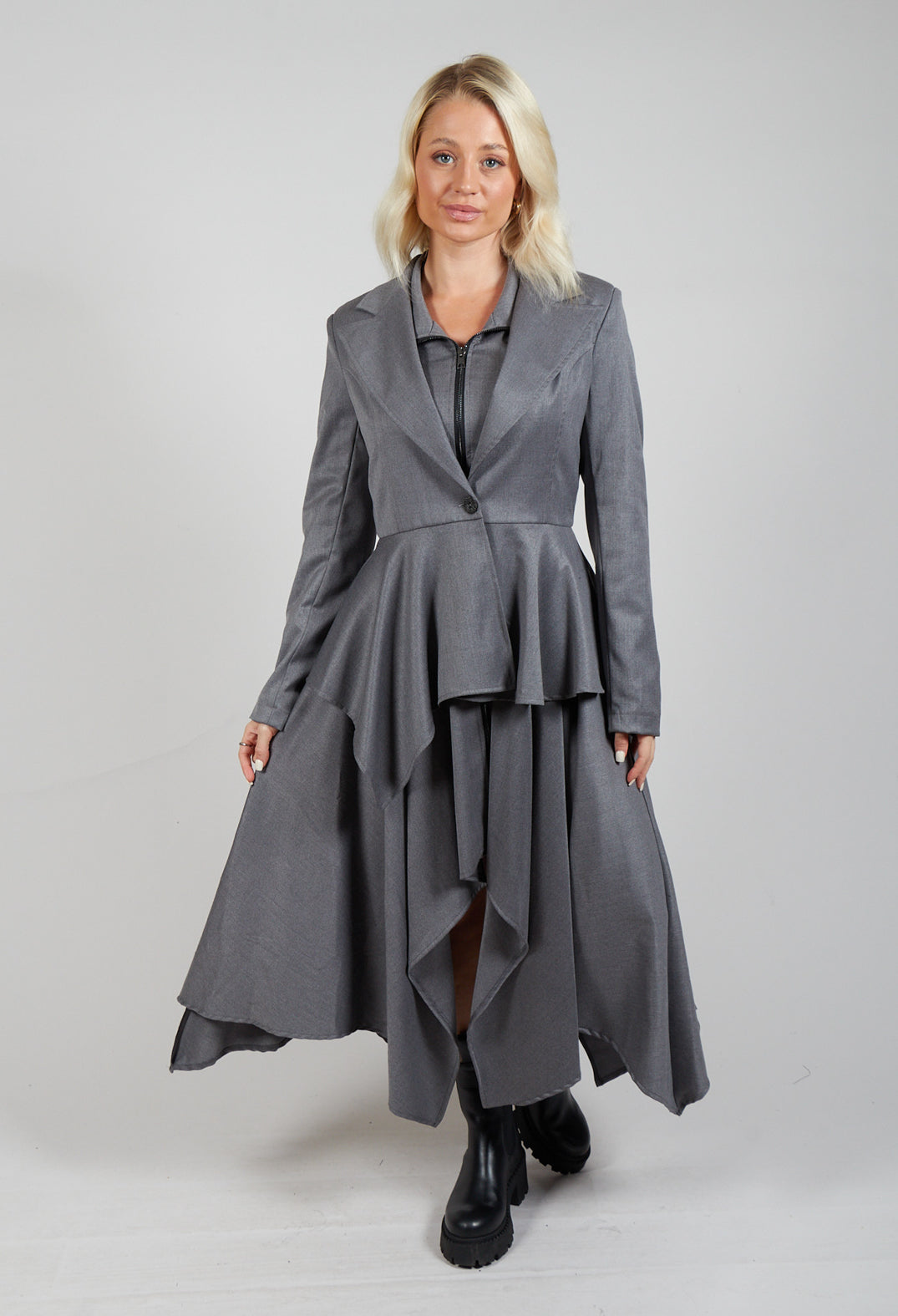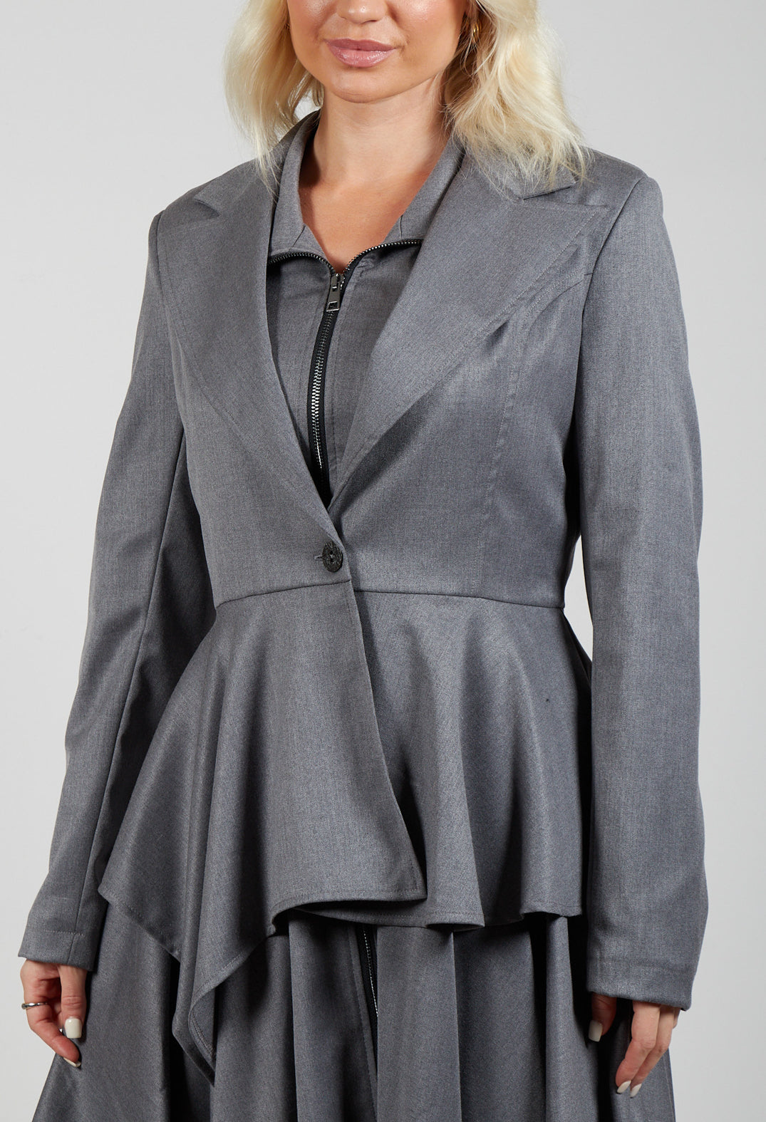 Asymmetrical Single Button Blazer in Grey