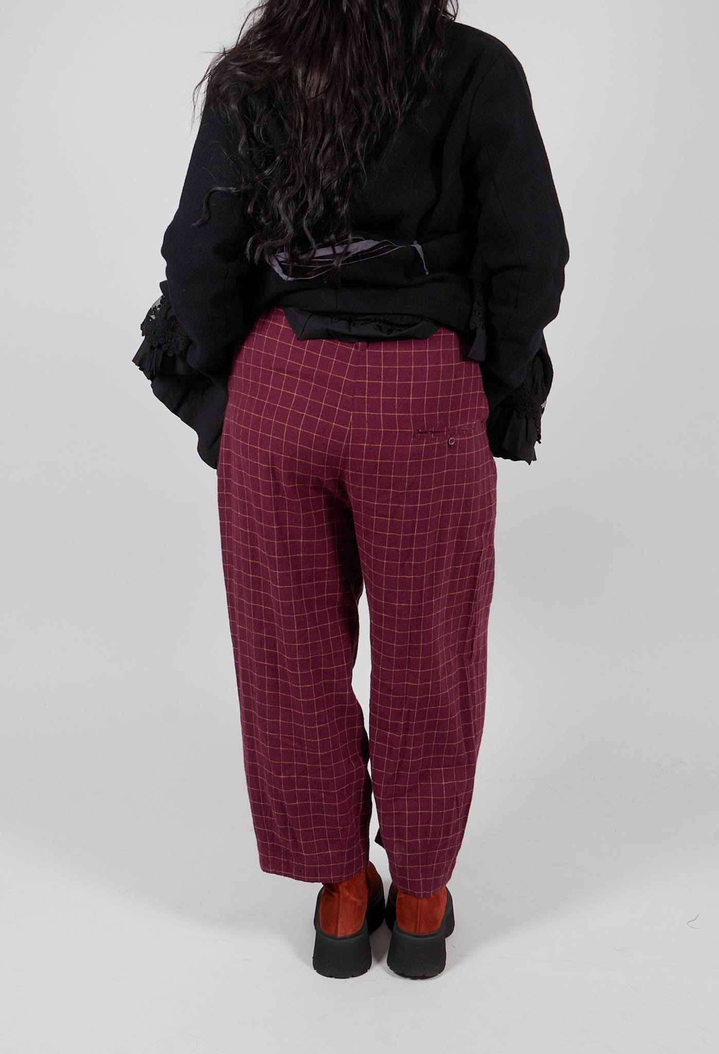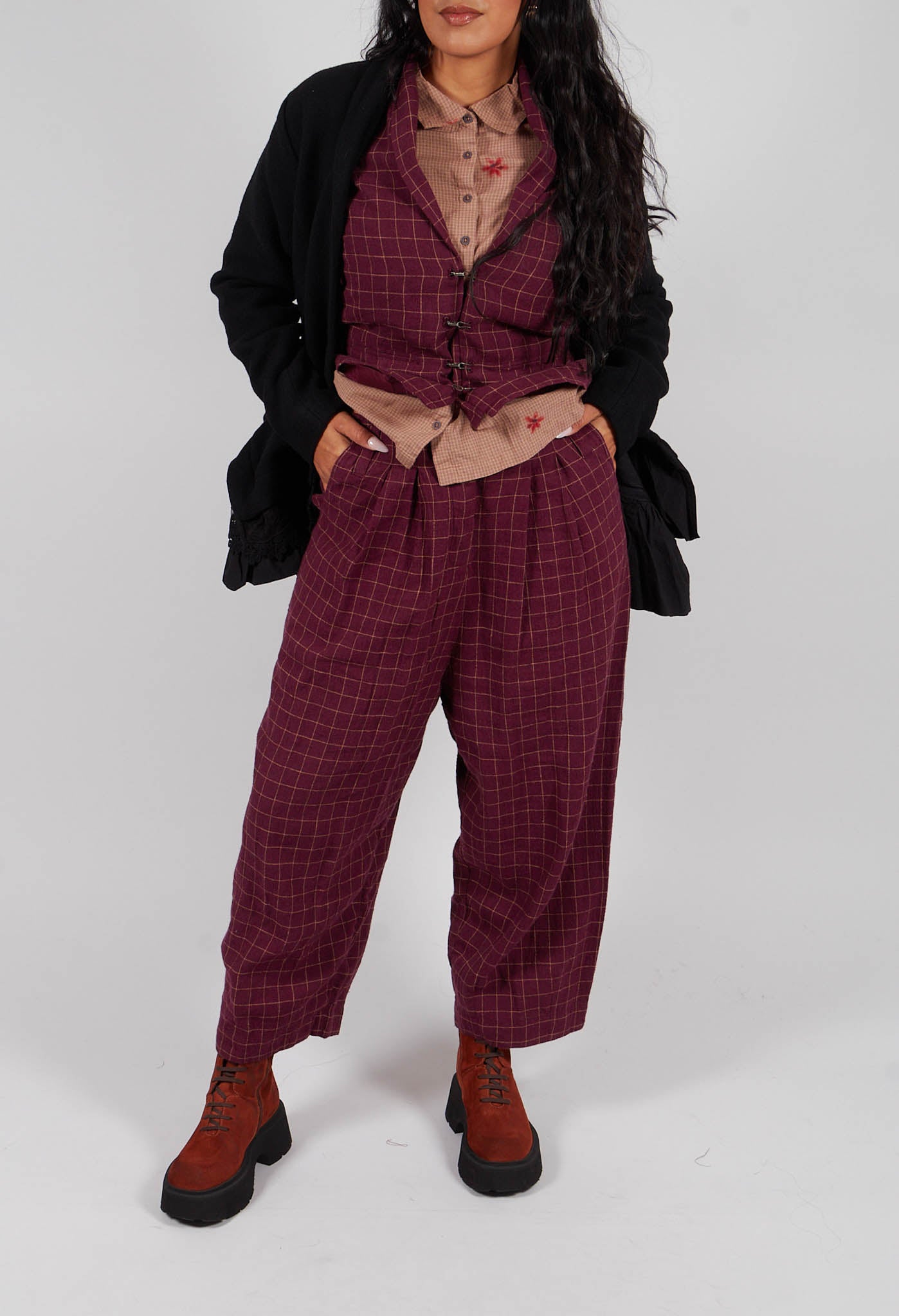 Botvi Linen Check Trousers in Dark Plum by Ewa I Walla