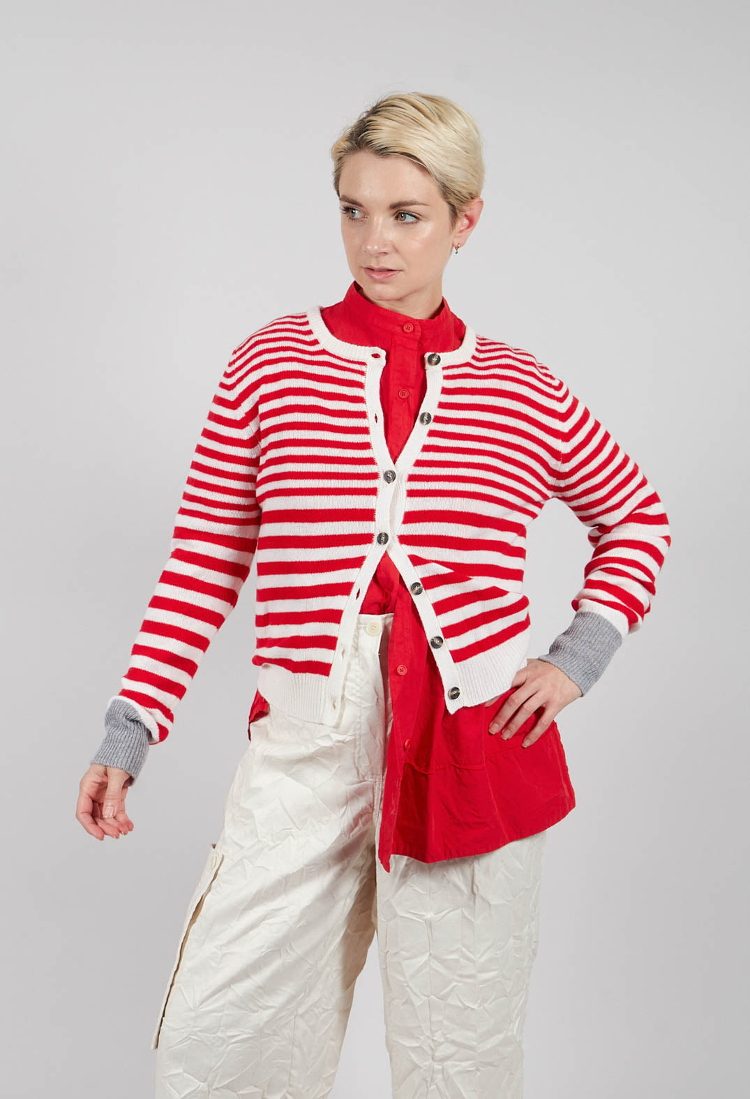 Cardigan with Degrade Stripes in Urban Red