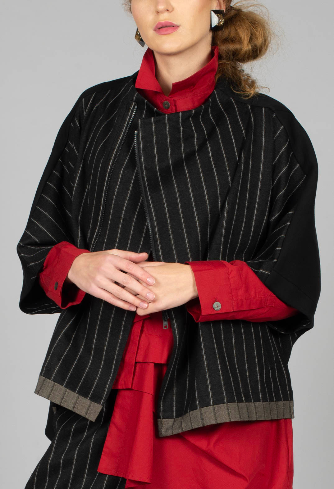 Collarless Jacket in Black by Moyuru
