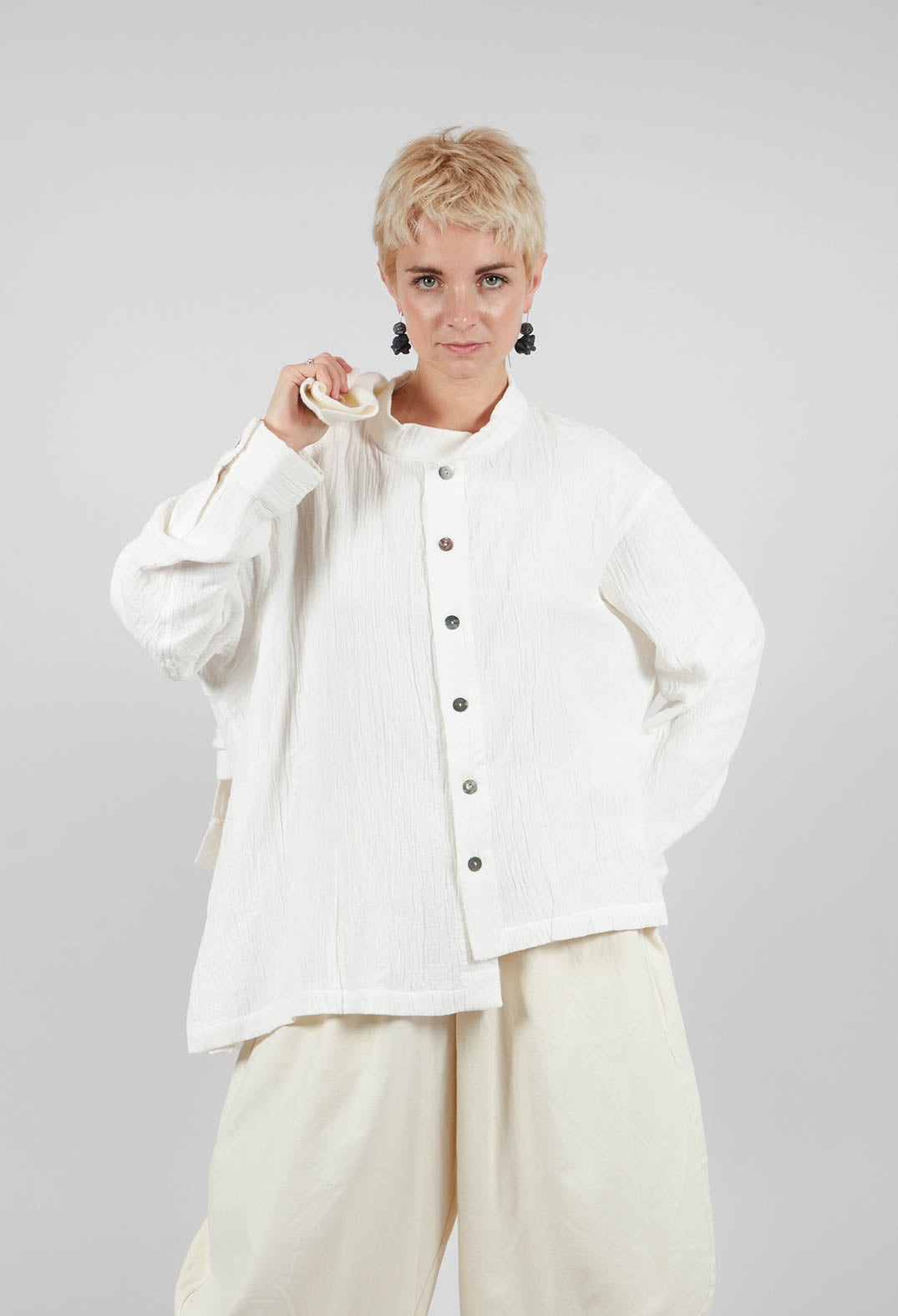 Collarless Shirt in White by Moyuru