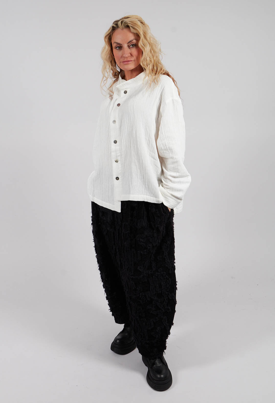 Collarless Shirt in White