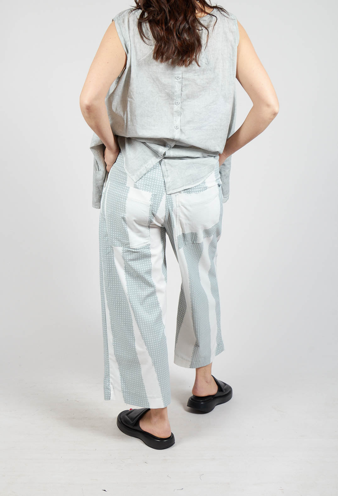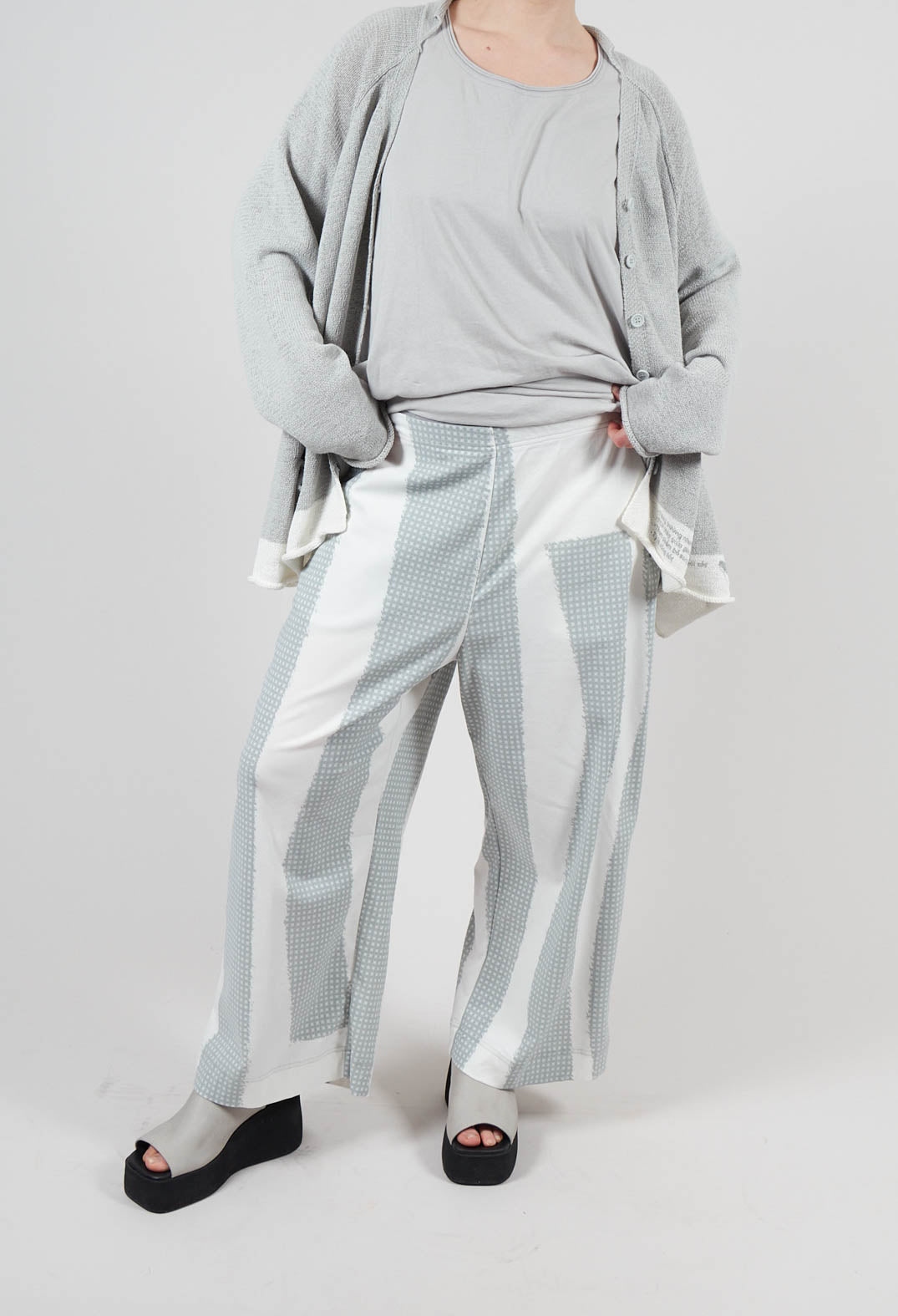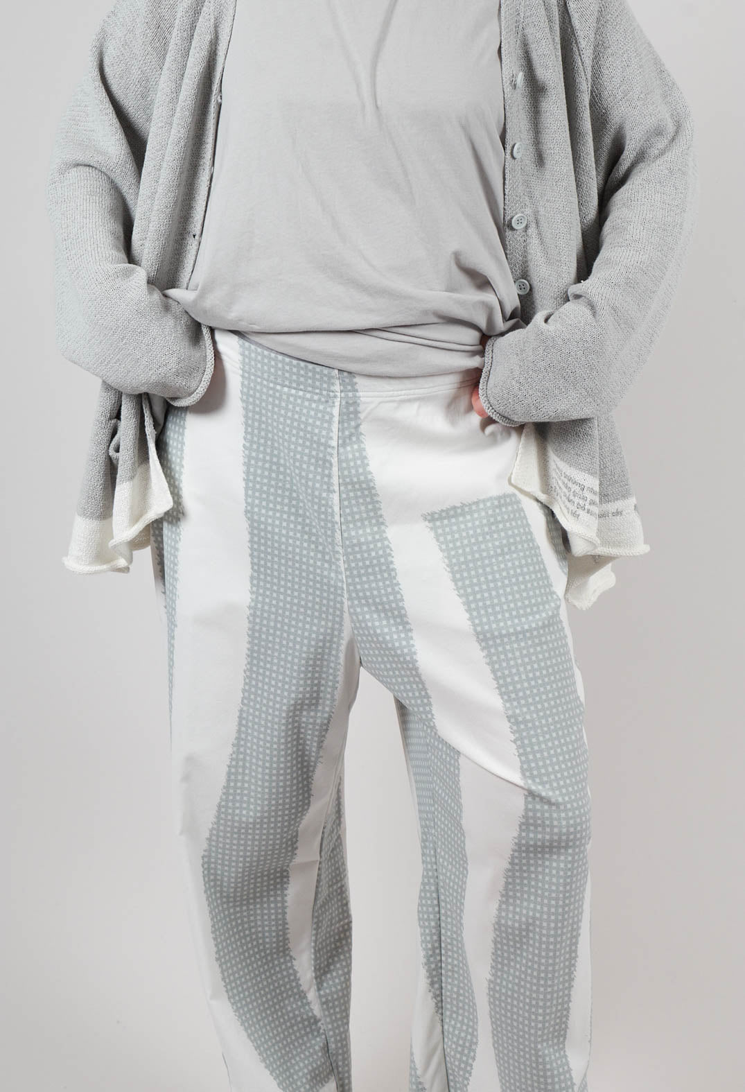 Cropped Pull On Trousers in Grey Print