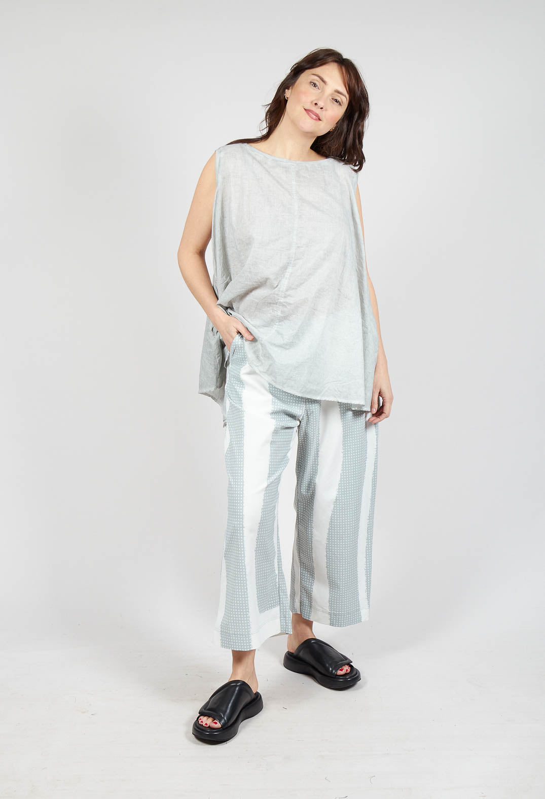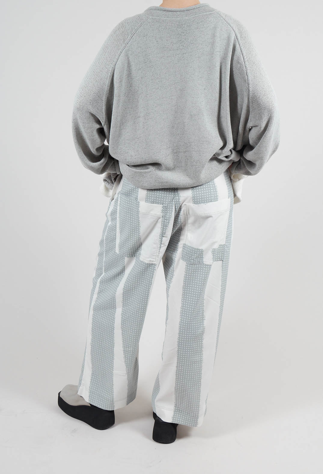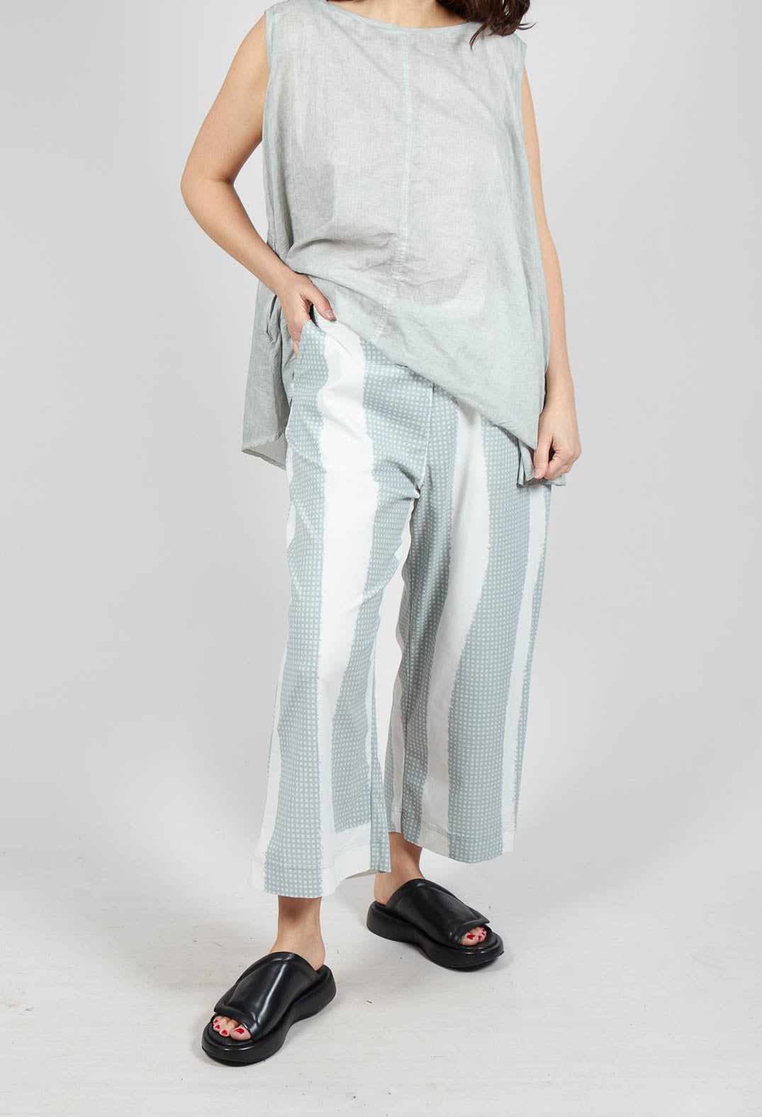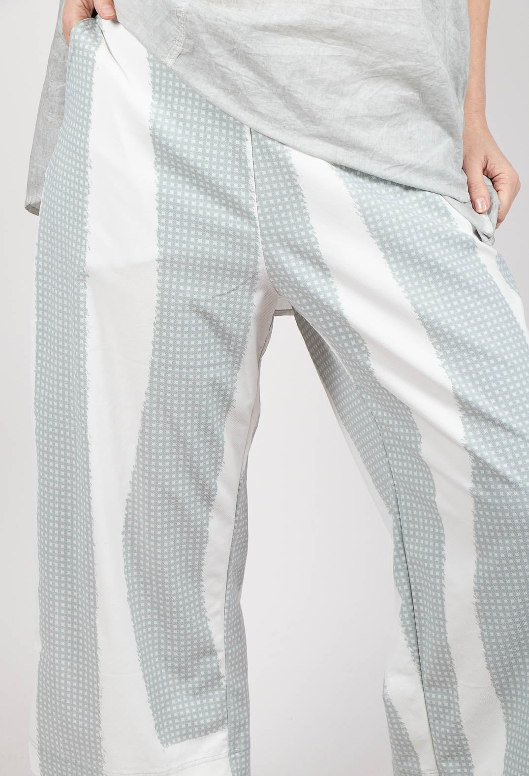 Cropped Pull On Trousers in Grey Print