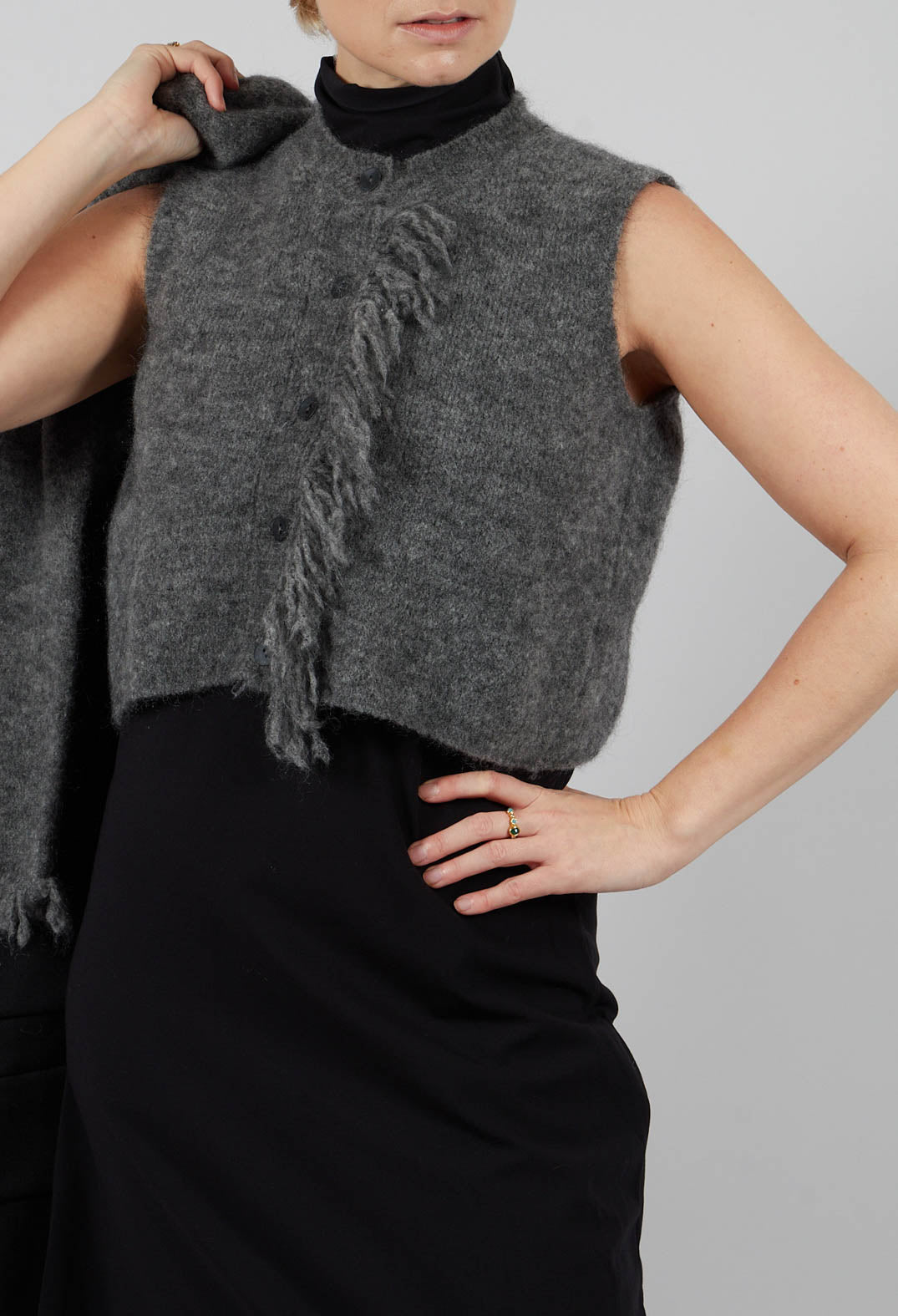Cropped Sleeveless Cardigan in Dark Grey by Sarah Pacini