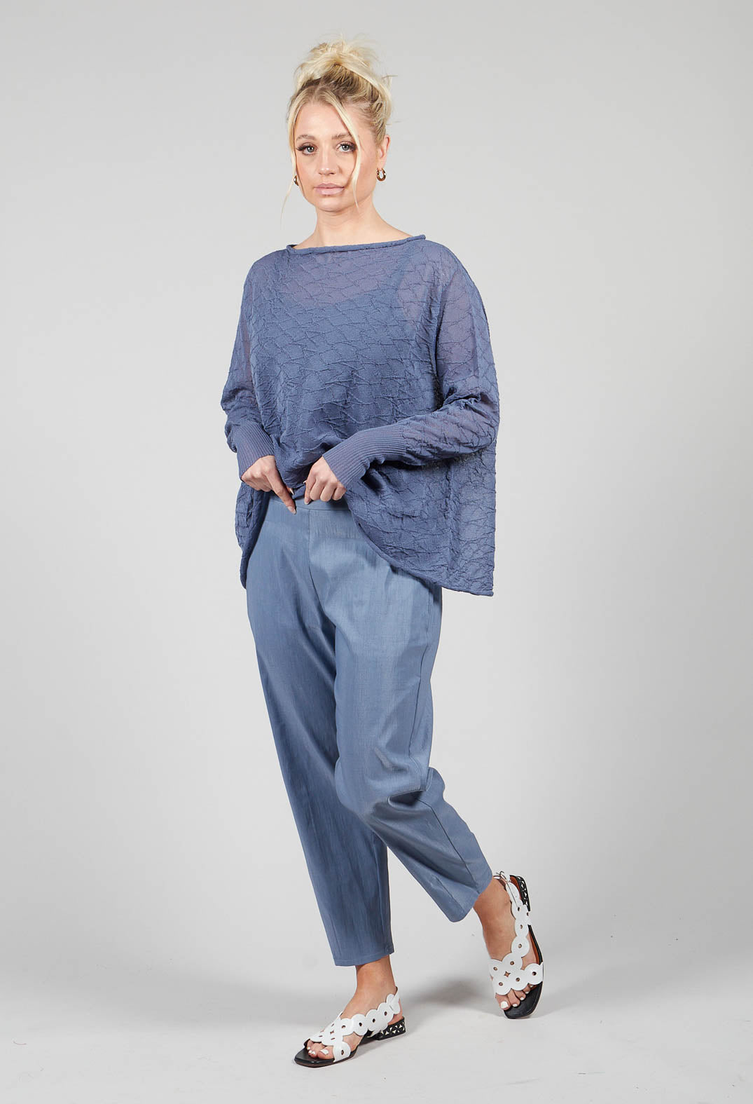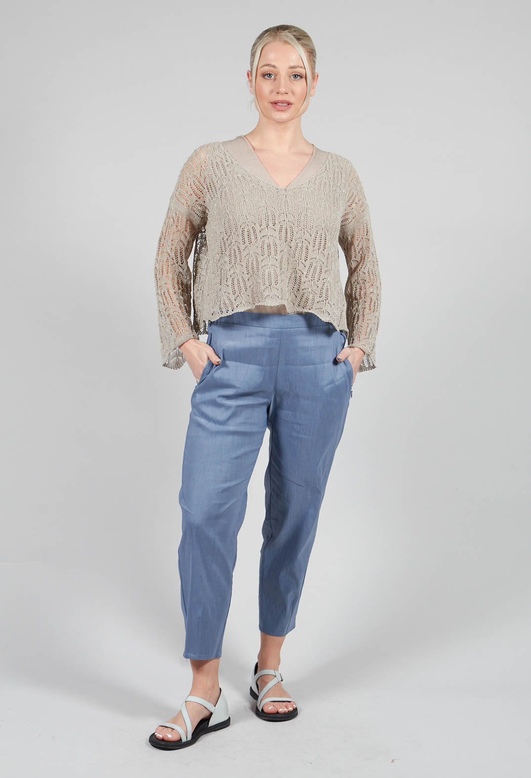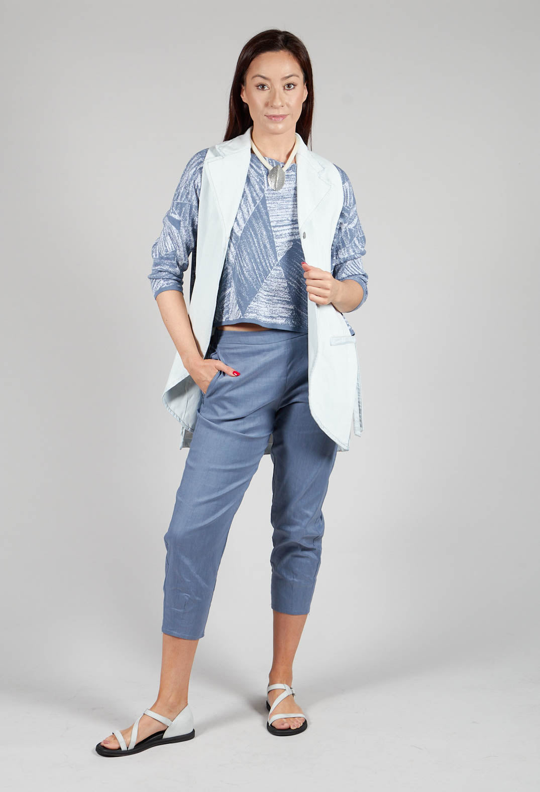 Cropped Slim Leg Pants in Steel Blue