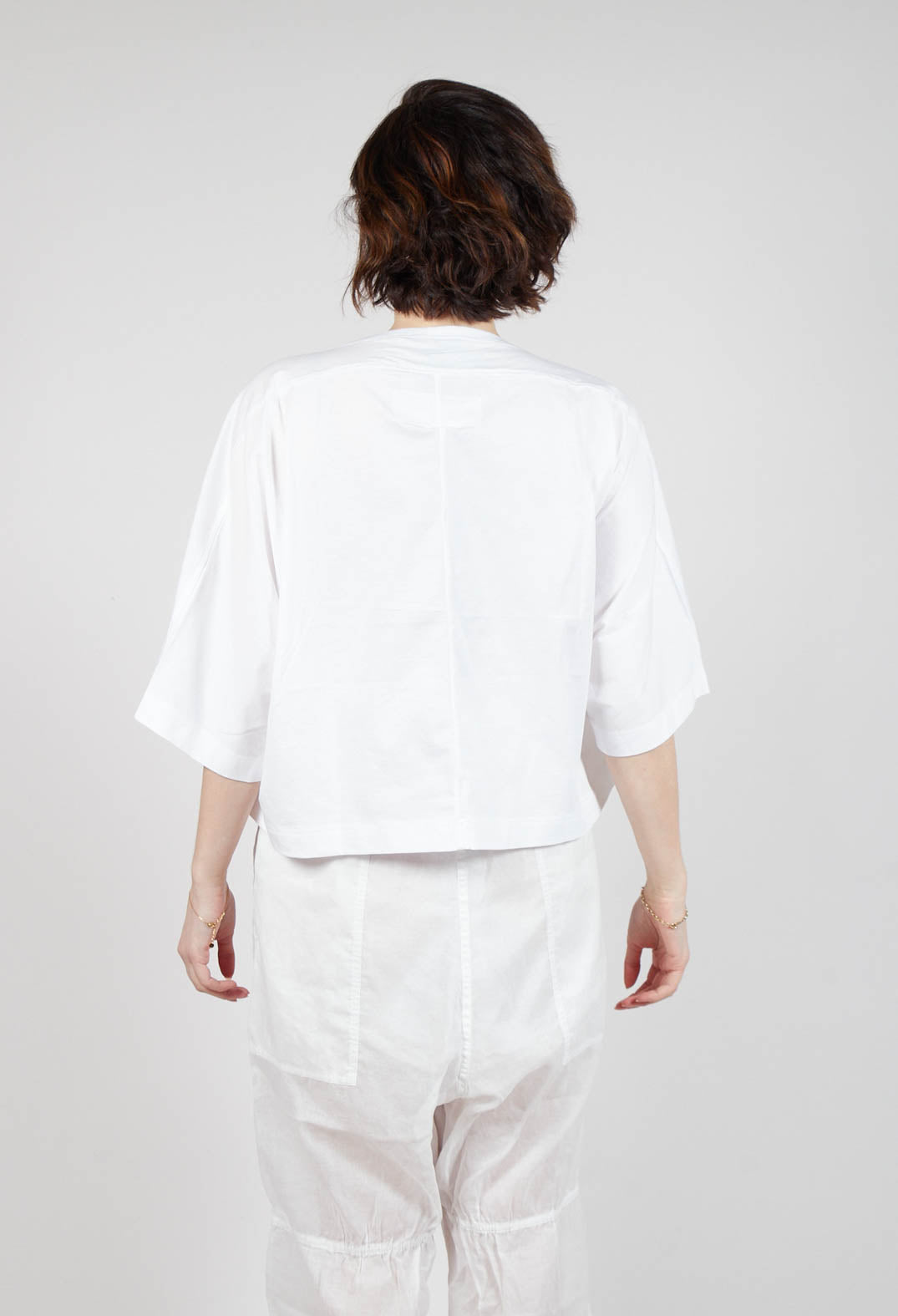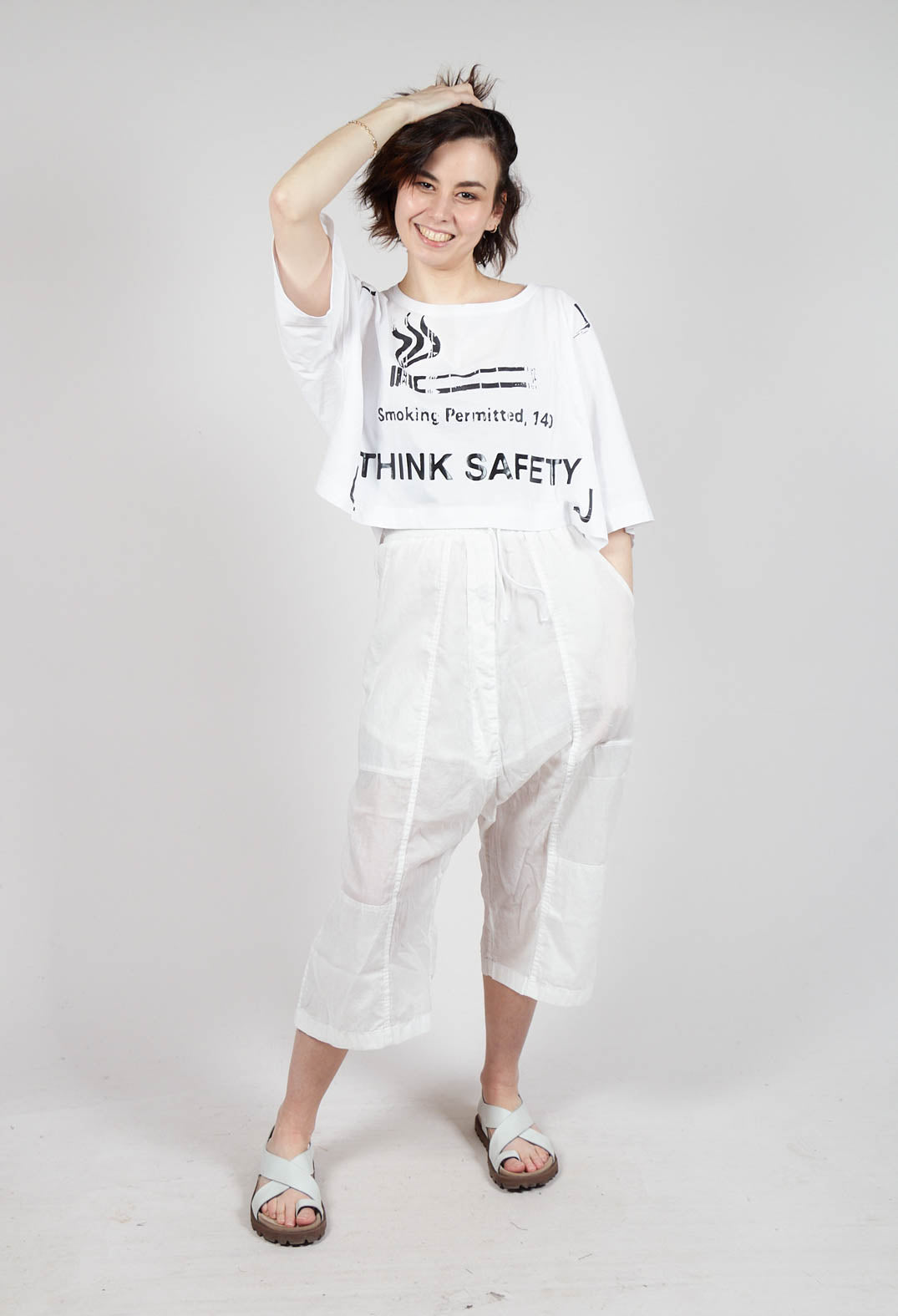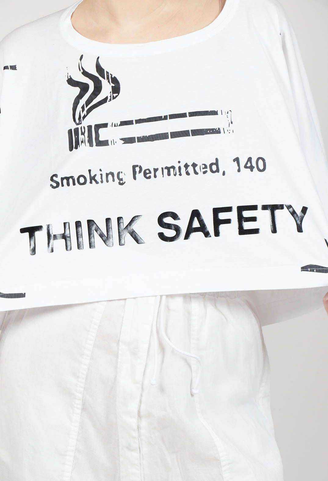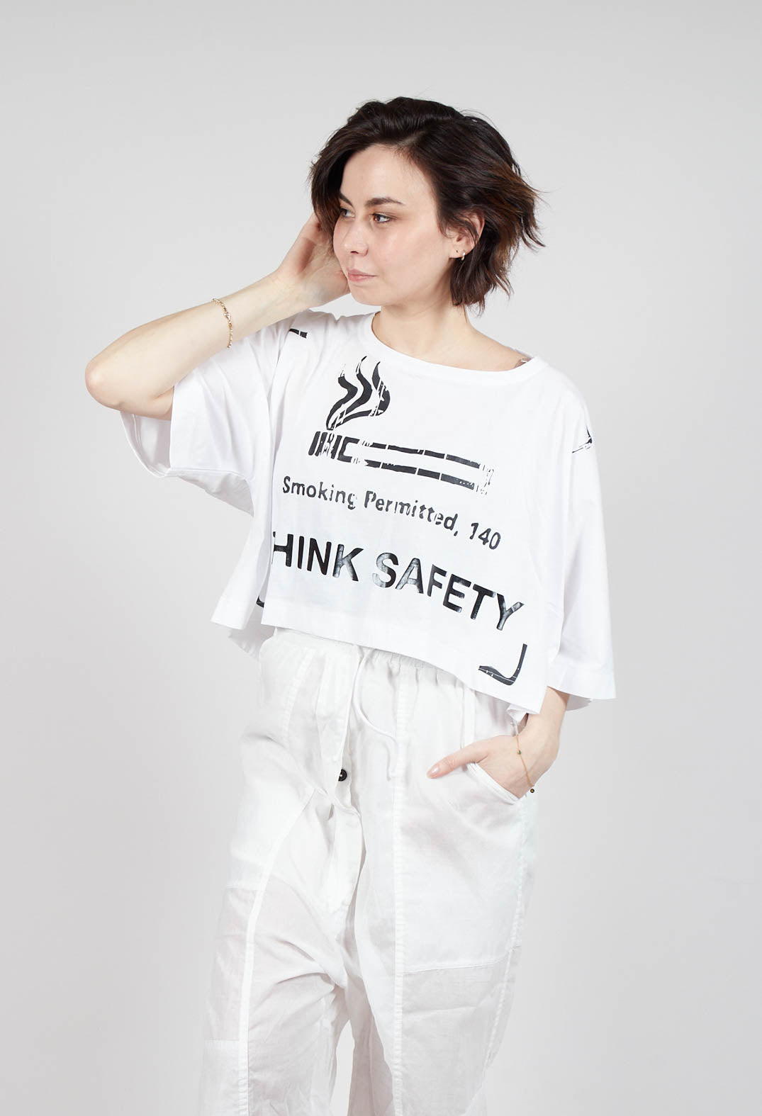 Cropped T-Shirt with Square Neckline in Bleach and Black Print