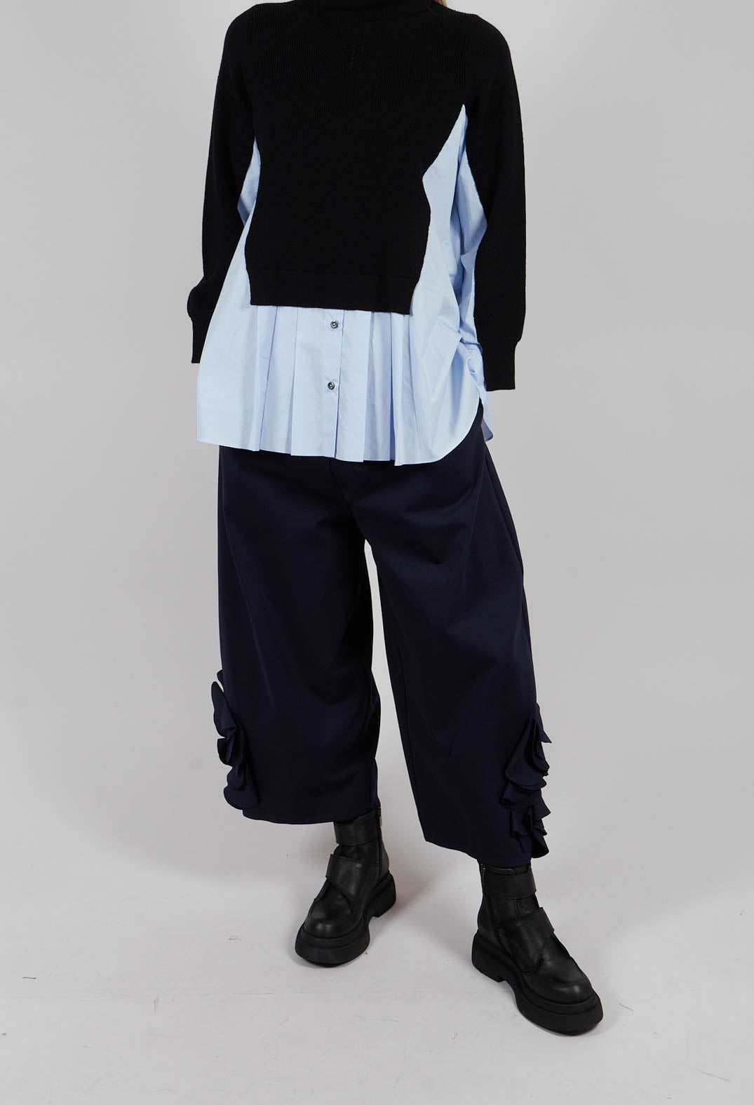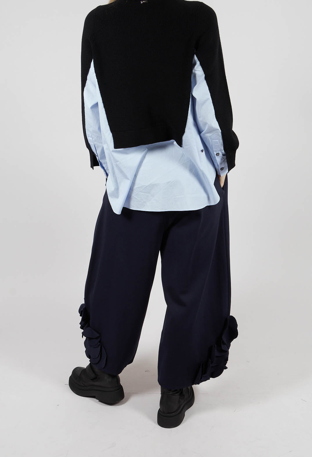 Cropped Trousers with Embellishment Detail in Blue Nights