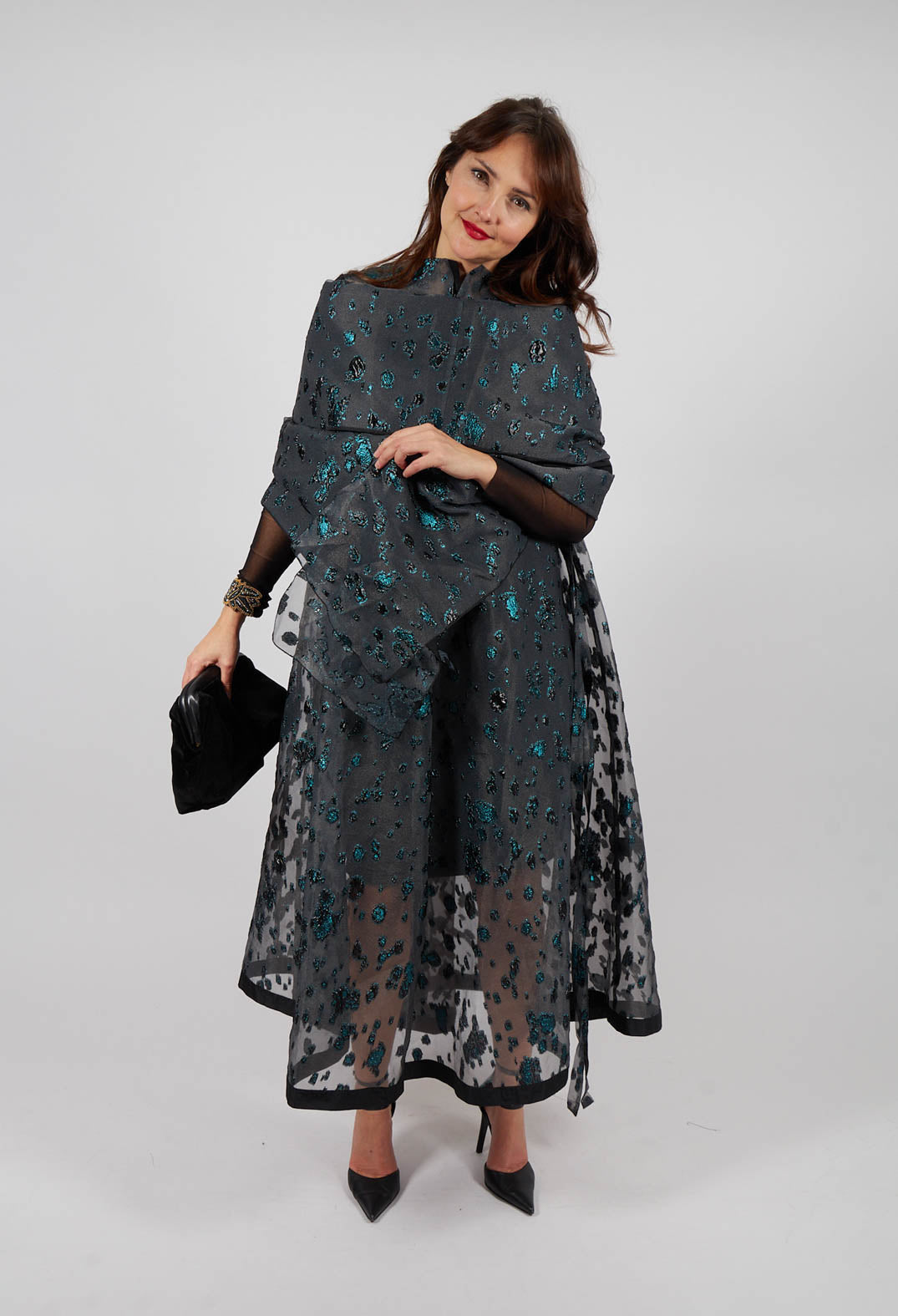 This striking scarf features a sophisticated black base adorned with dynamic green accents, creating a bold and contemporary design. The smooth, luxurious fabric has a subtle sheen that enhances the vibrant pattern, which is thoughtfully scattered across the scarf for a visually interesting effect. With its generous length and refined edges, this piece drapes elegantly, offering both warmth and style. Perfect for adding a touch of modern flair to any ensemble, it effortlessly elevates both casual and polished looks with its unique blend of colours and textures.