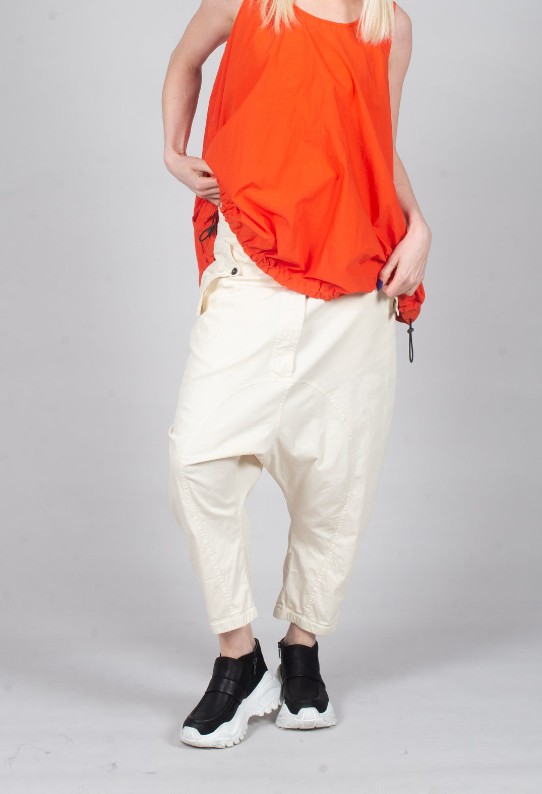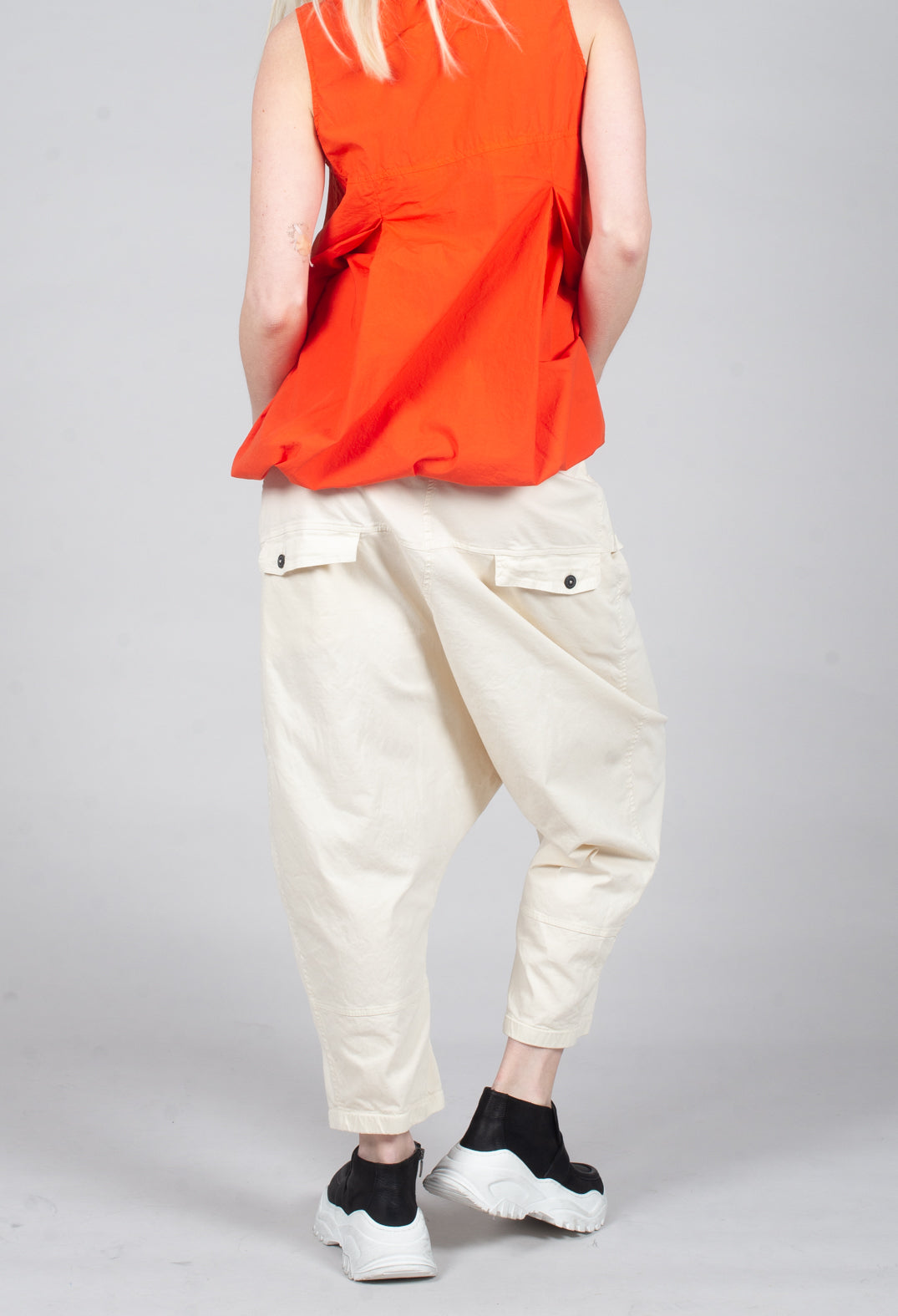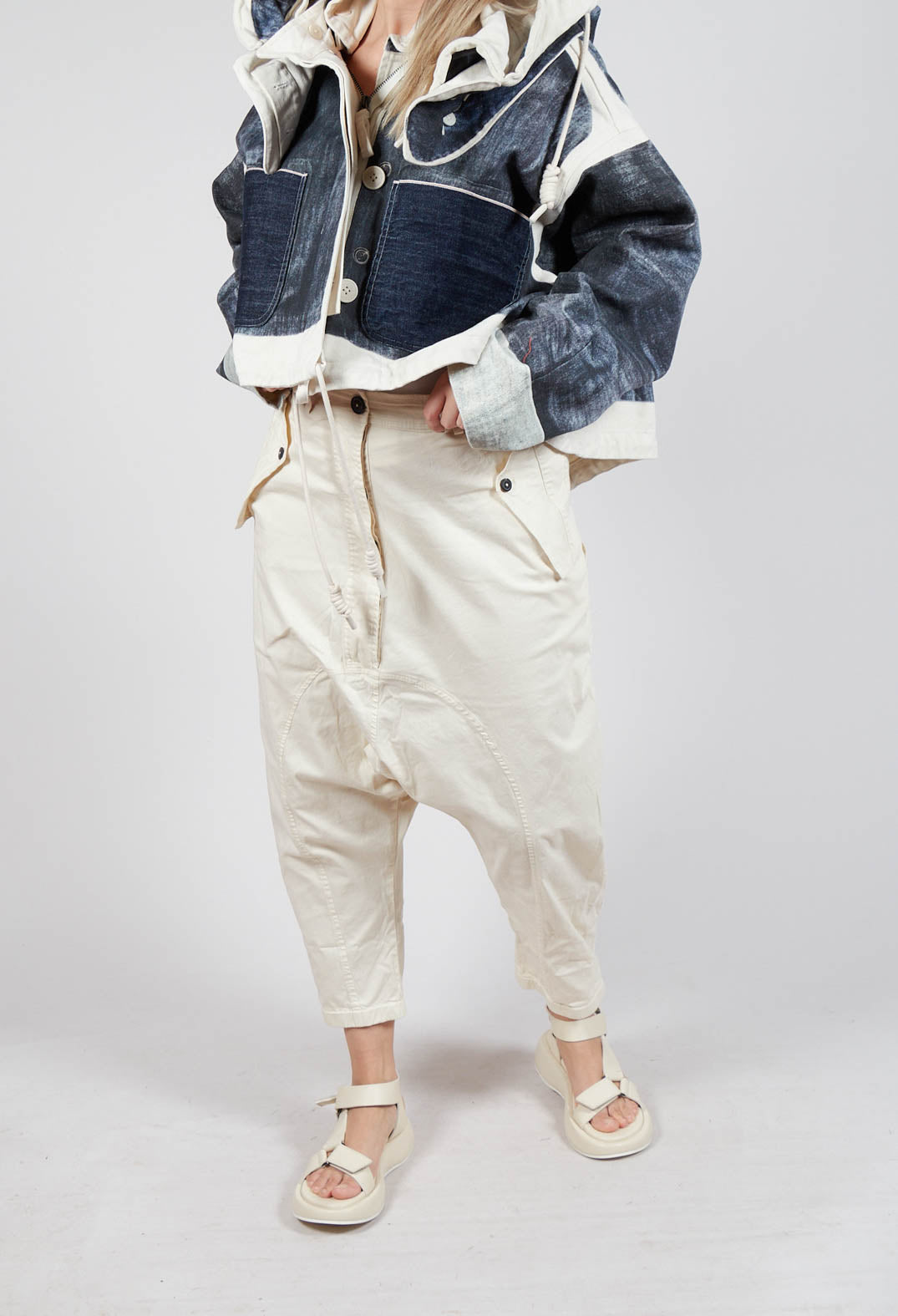 Drop-Crotch Cotton Trousers with Belt Loops in Greige