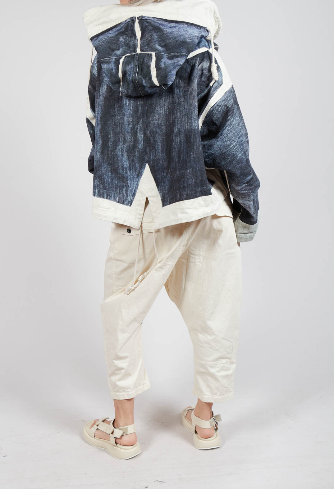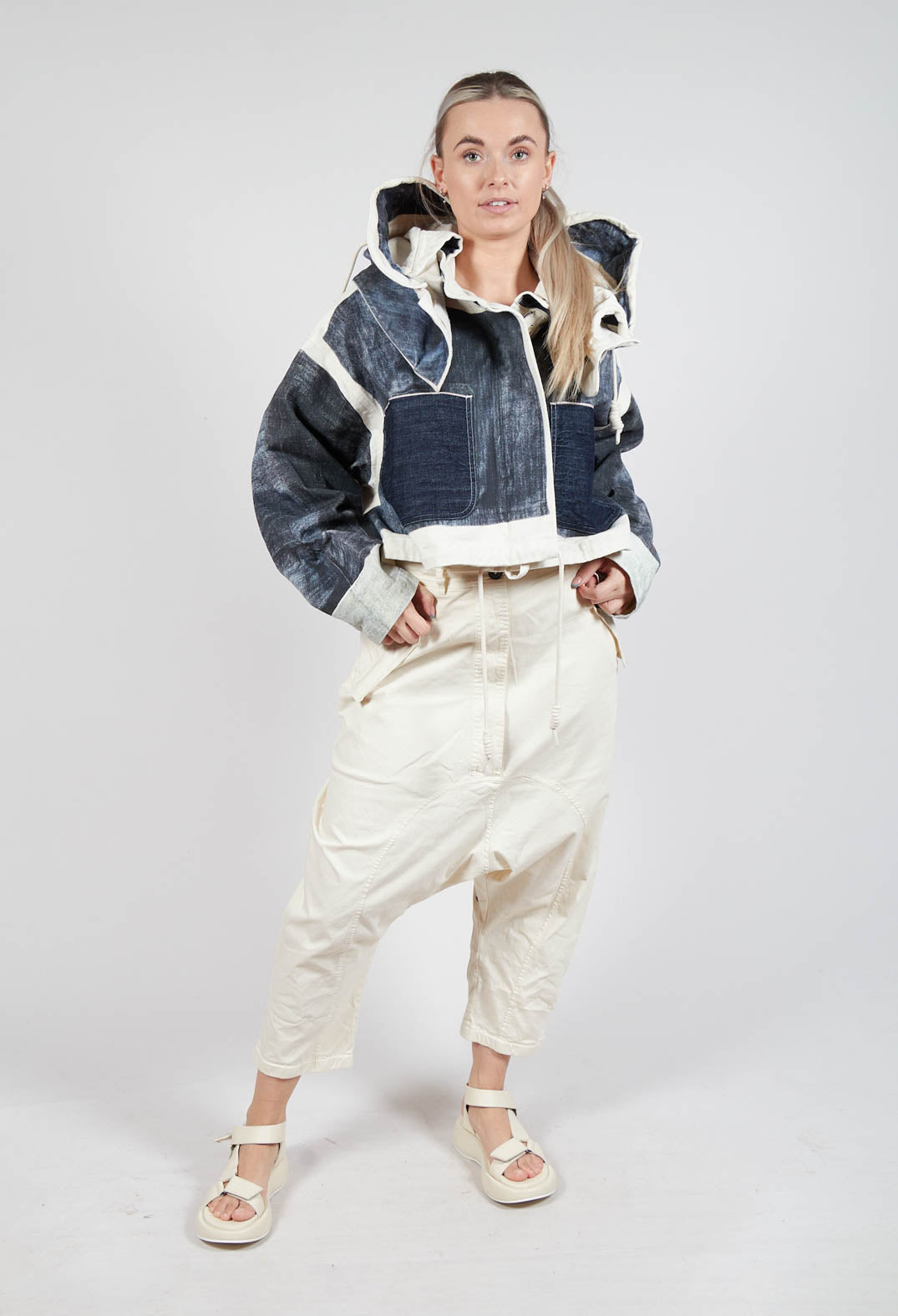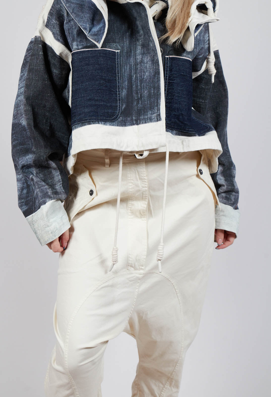 Drop-Crotch Cotton Trousers with Belt Loops in Greige