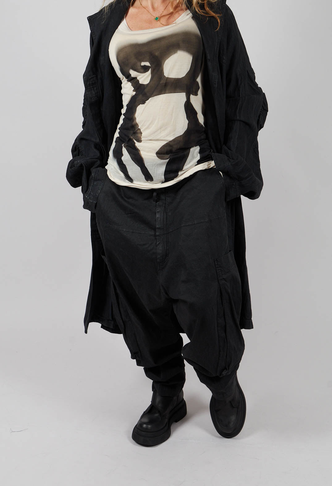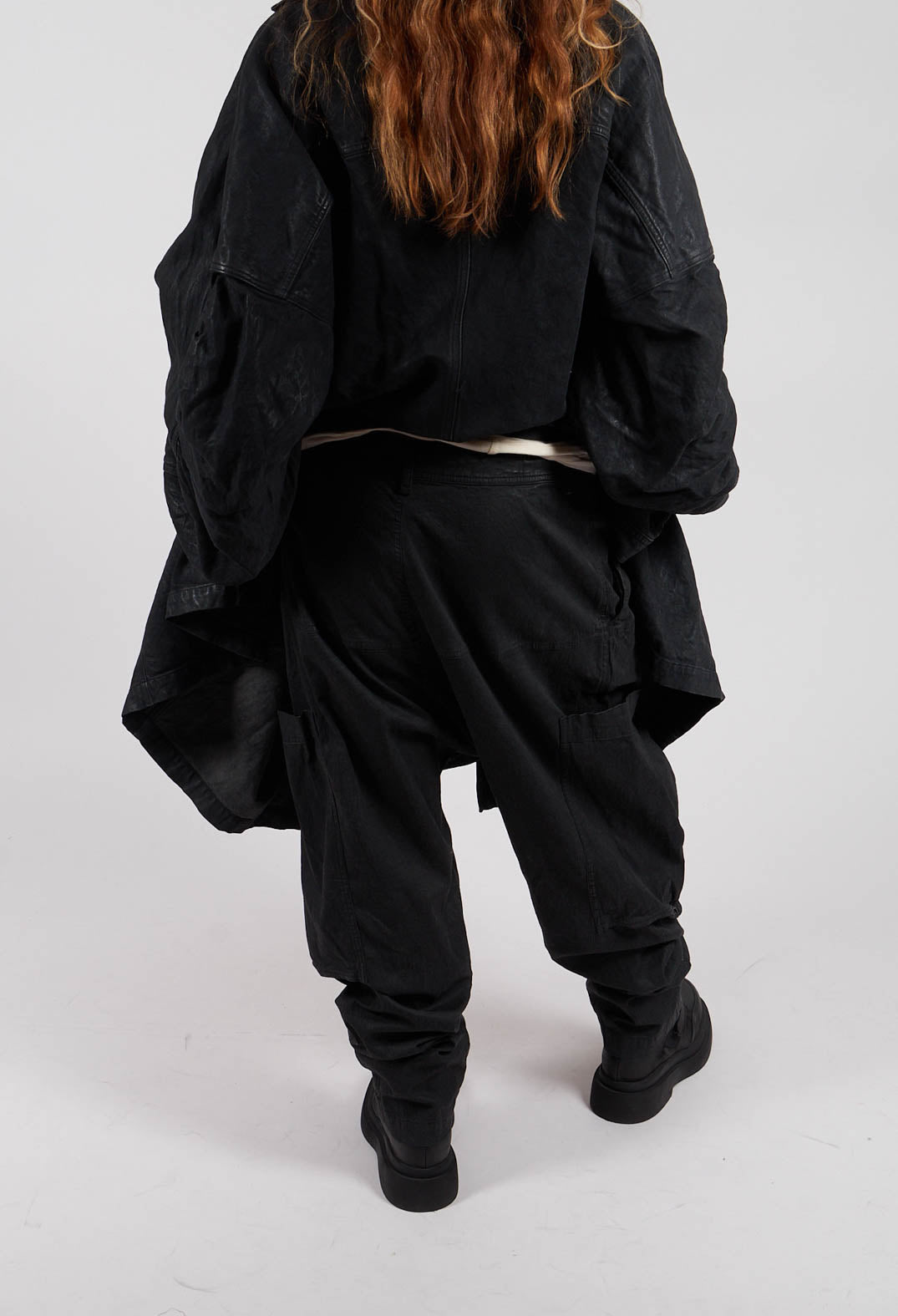 Drop Crotch Trousers with Belt in Black Gloss - 1070103