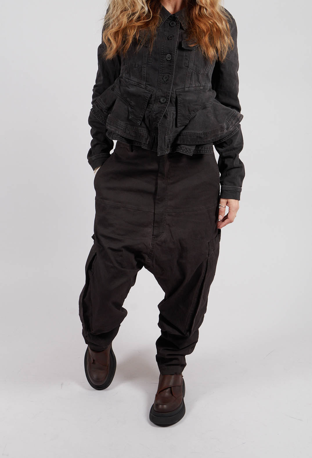 Drop Crotch Trousers with Belt in Turf Wash - 1070103