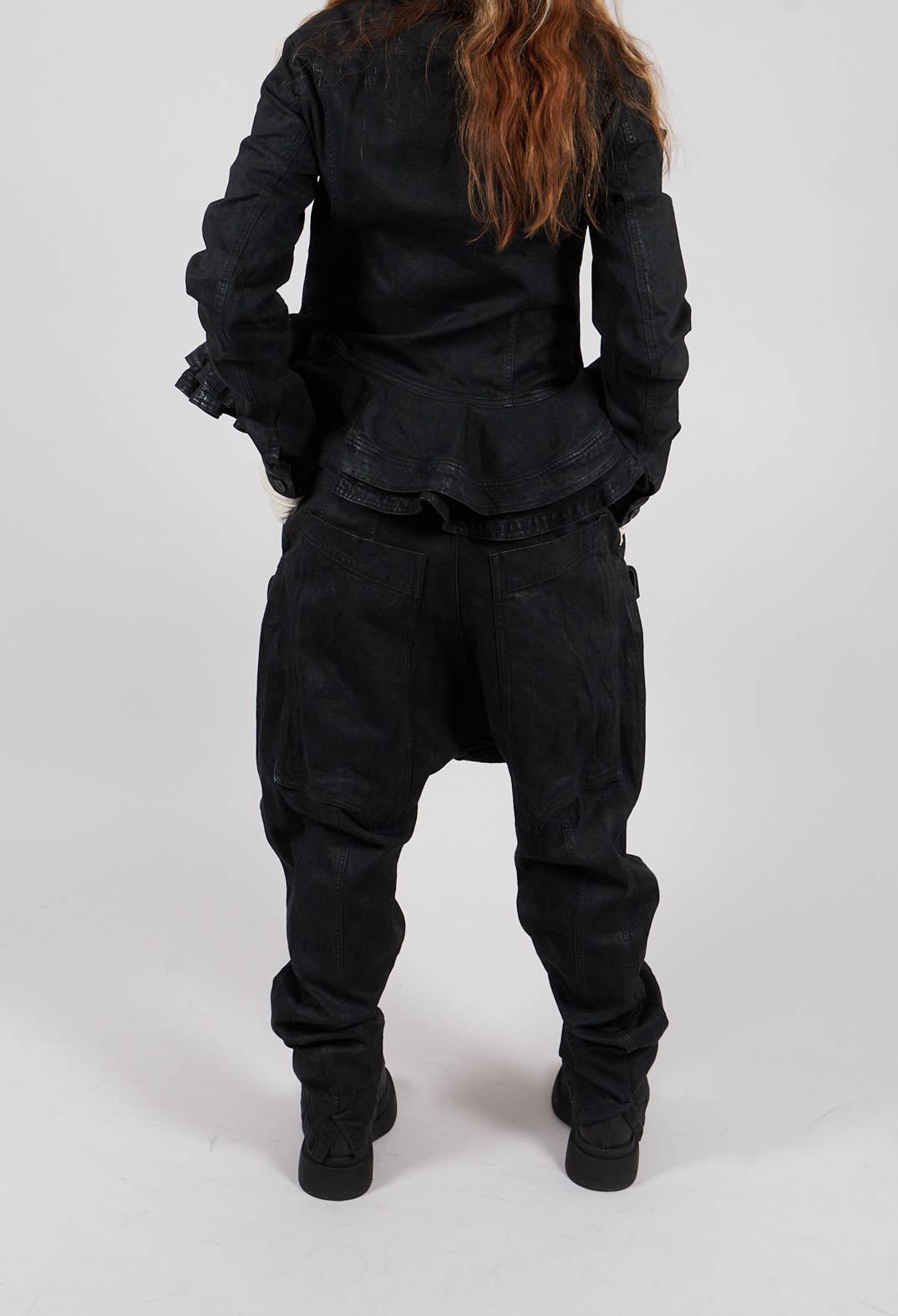 Drop Crotch Trousers with Pockets in Black Gloss - 1030107