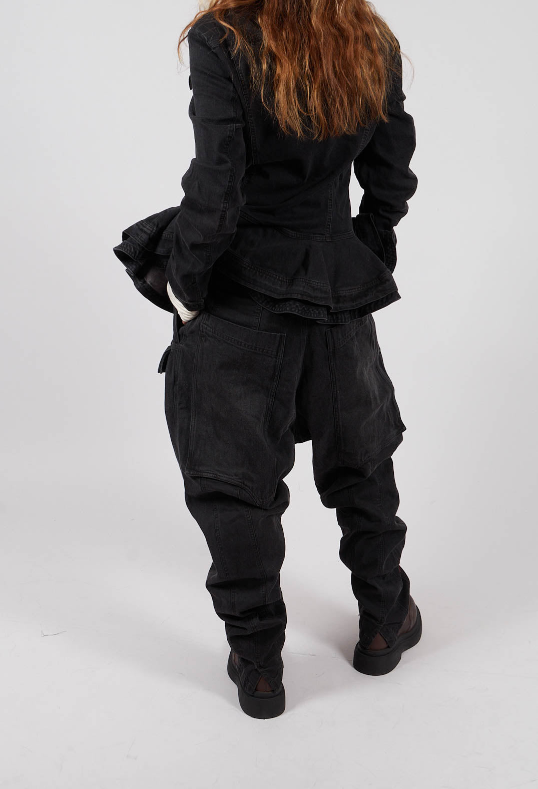 Drop Crotch Trousers with Pockets in Turf Black - 1030107