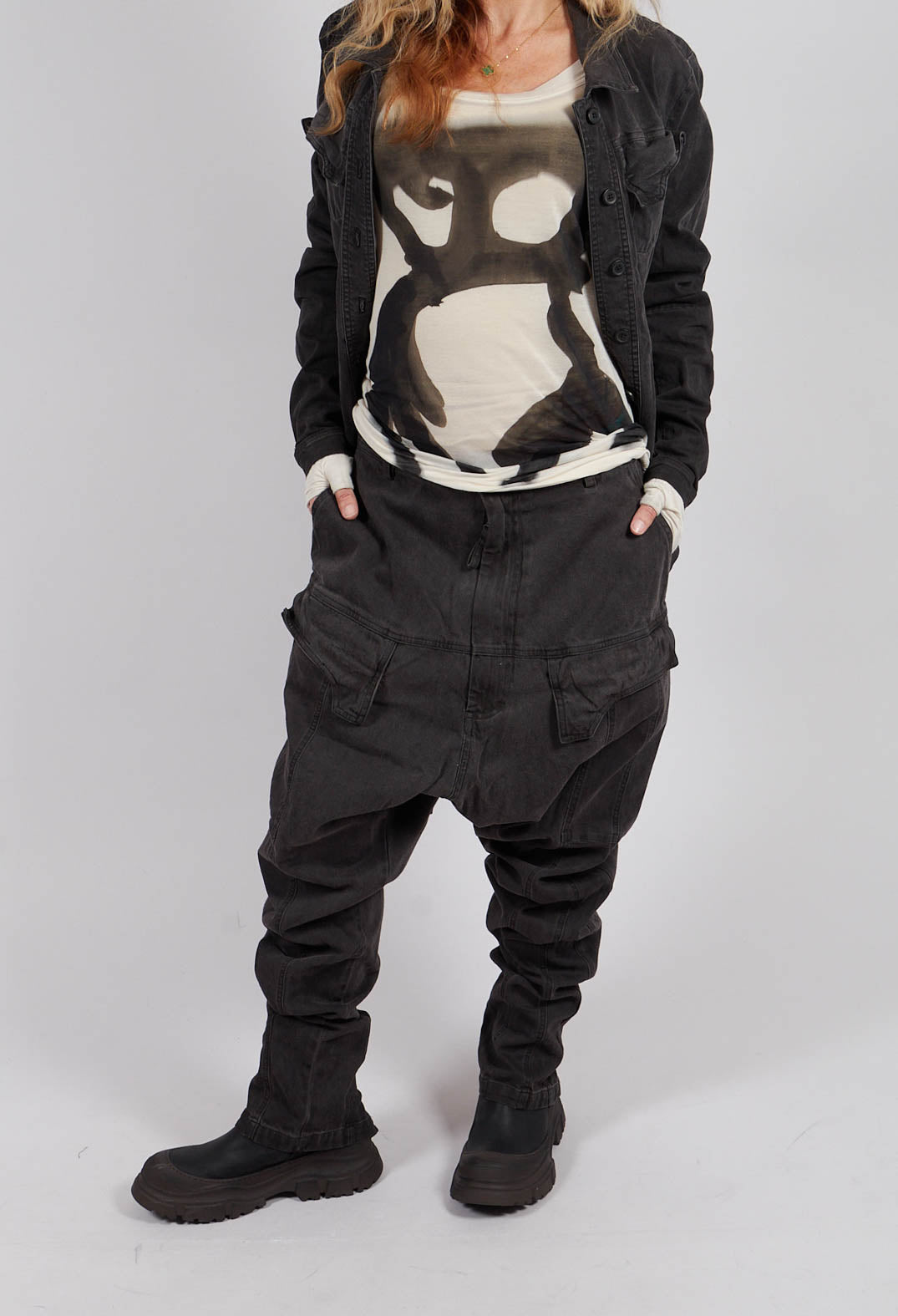 Drop Crotch Trousers with Pockets in Turf Wash - 1030107