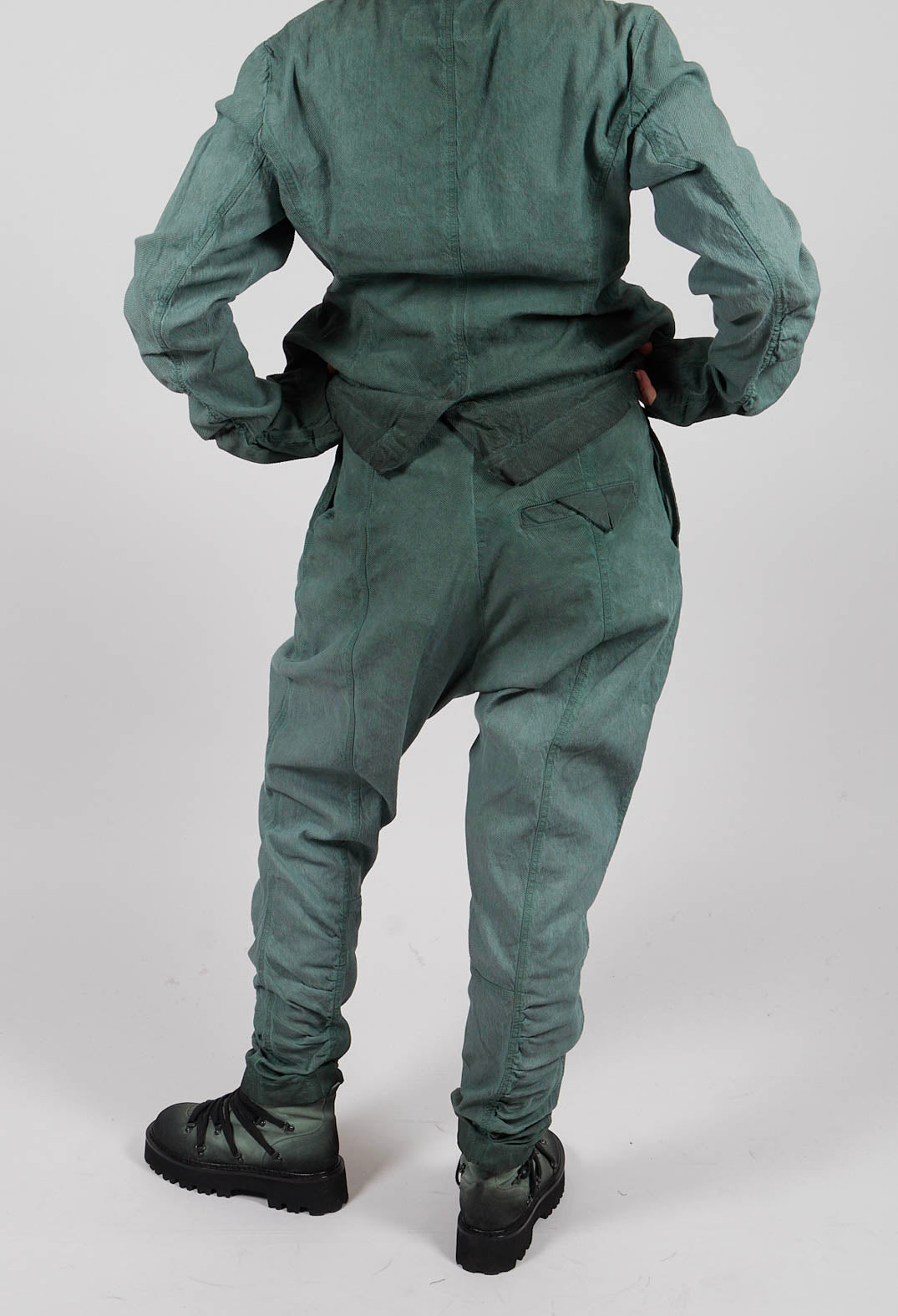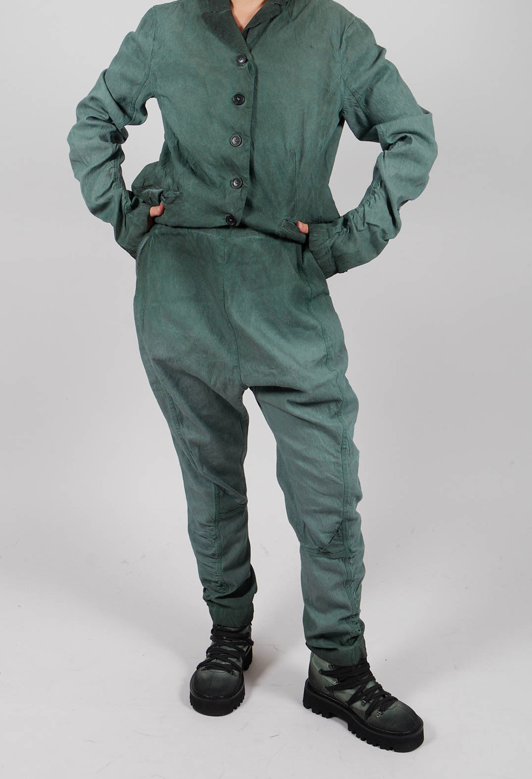 Drop Crotch Trousers with Ruched Leg in Pine Reverse - 2120103