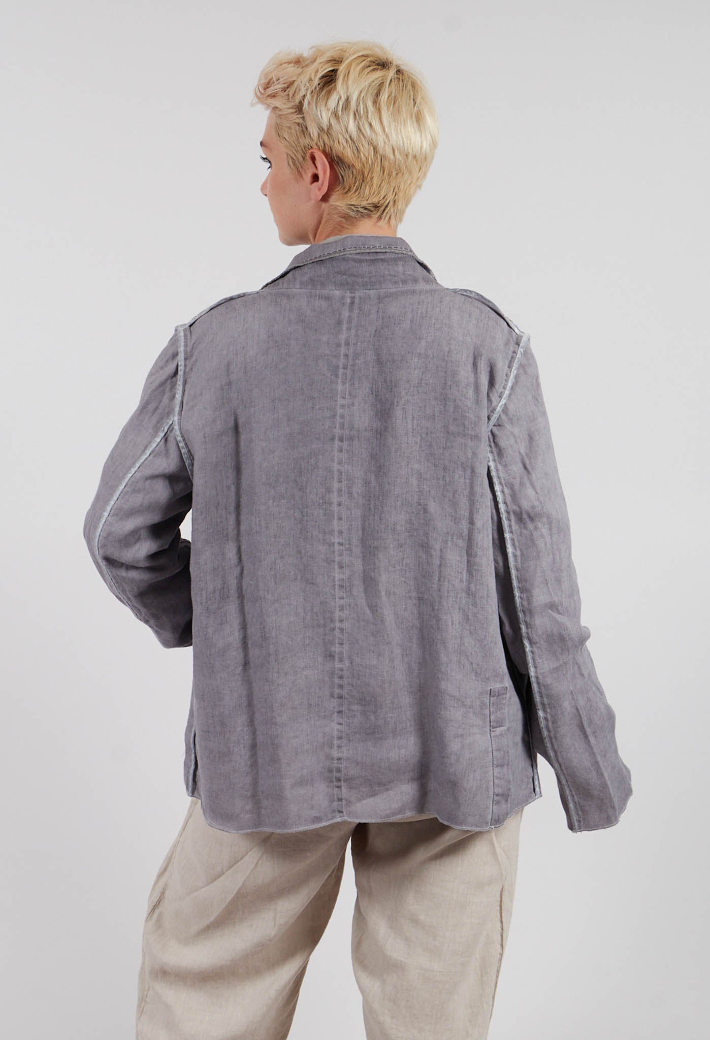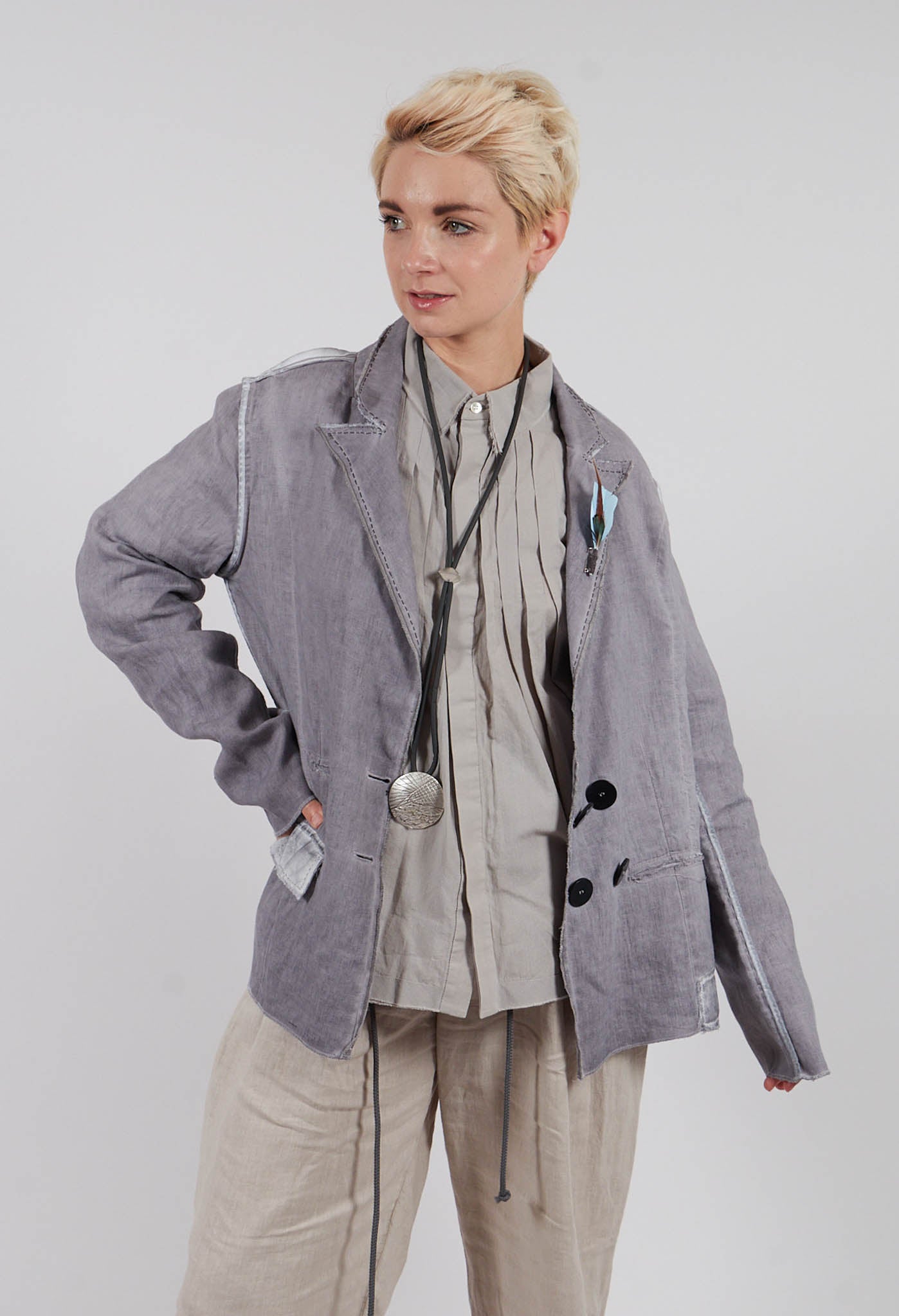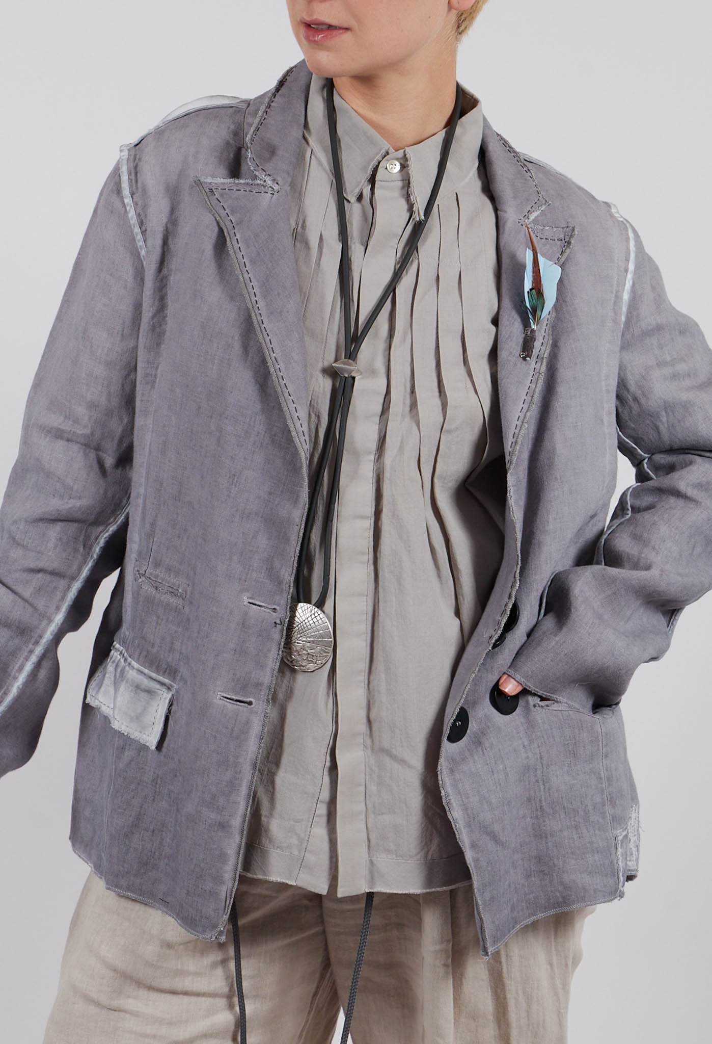 Feather Brooch Jacket in Silver Gray