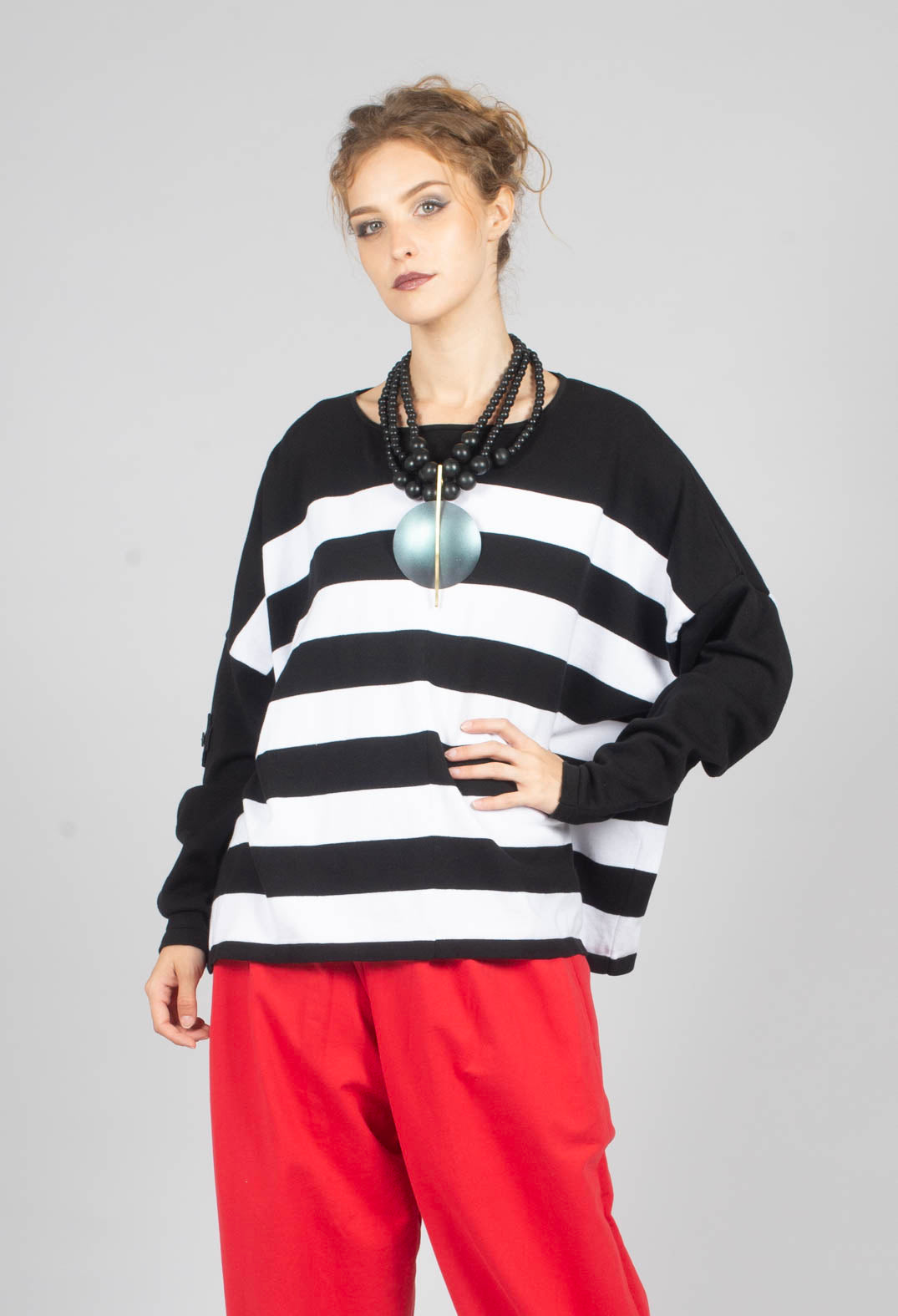 Knitted Box Jumper in Block Stripe by Pluslavie