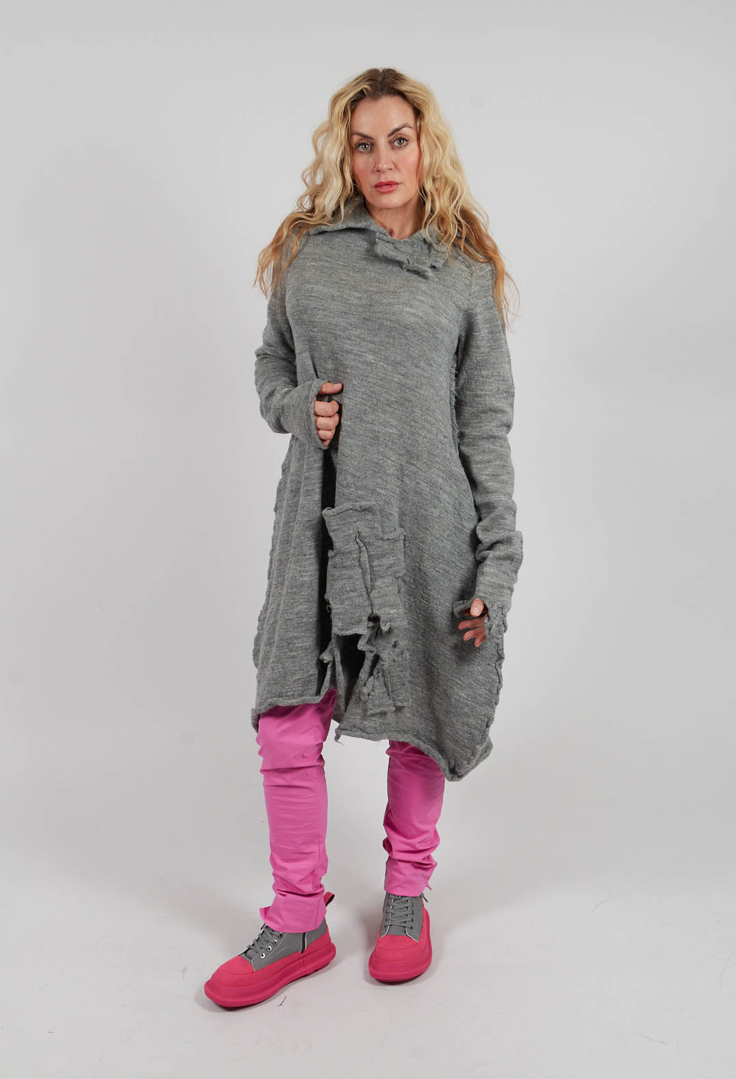 Knitted Dress with Fabric Embellishment in Dark Grey - 3897007