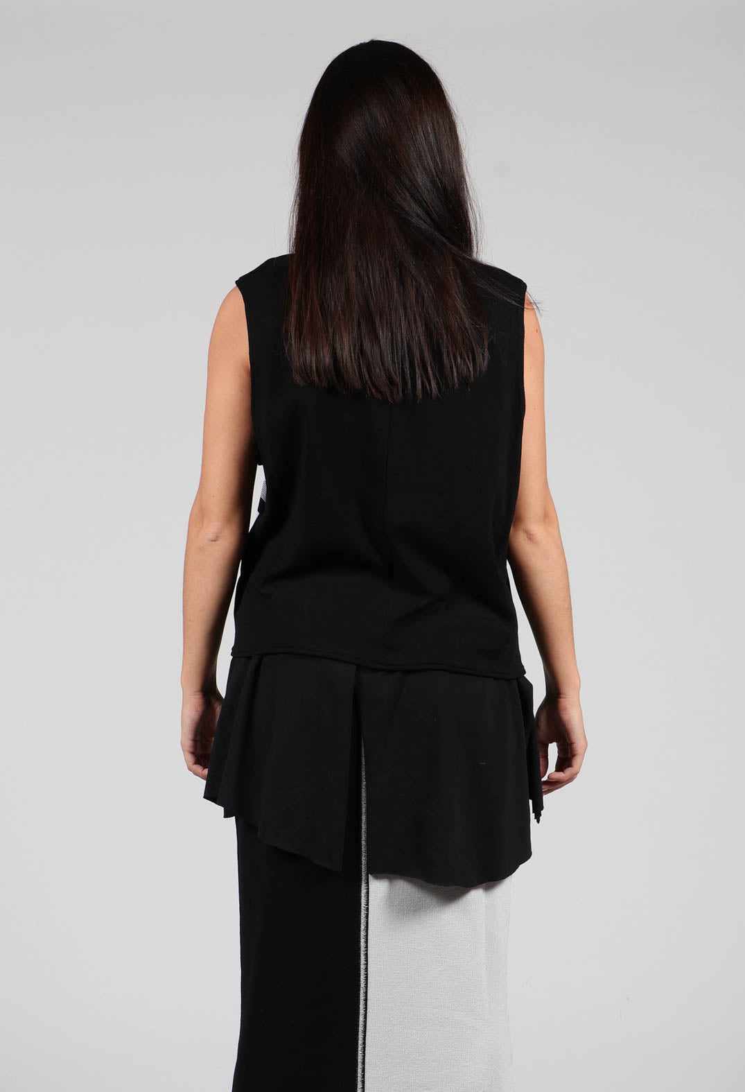 Soft knit texture and a monochrome palette give this waistcoat a refined, versatile appeal. Its clean cut layers effortlessly over dresses, blouses, or shirts, adding depth and contrast to everyday outfits. A lightweight yet impactful piece, it transitions seamlessly between casual styling and more polished ensembles.