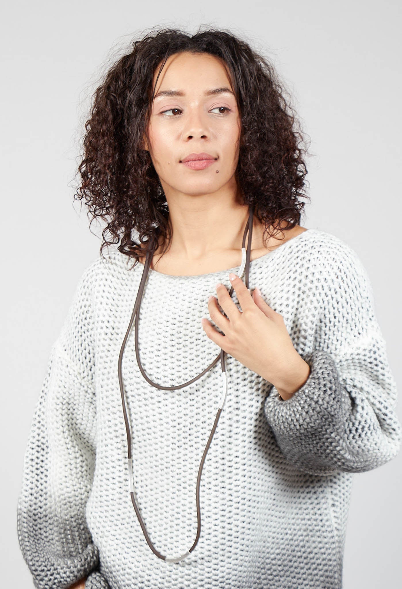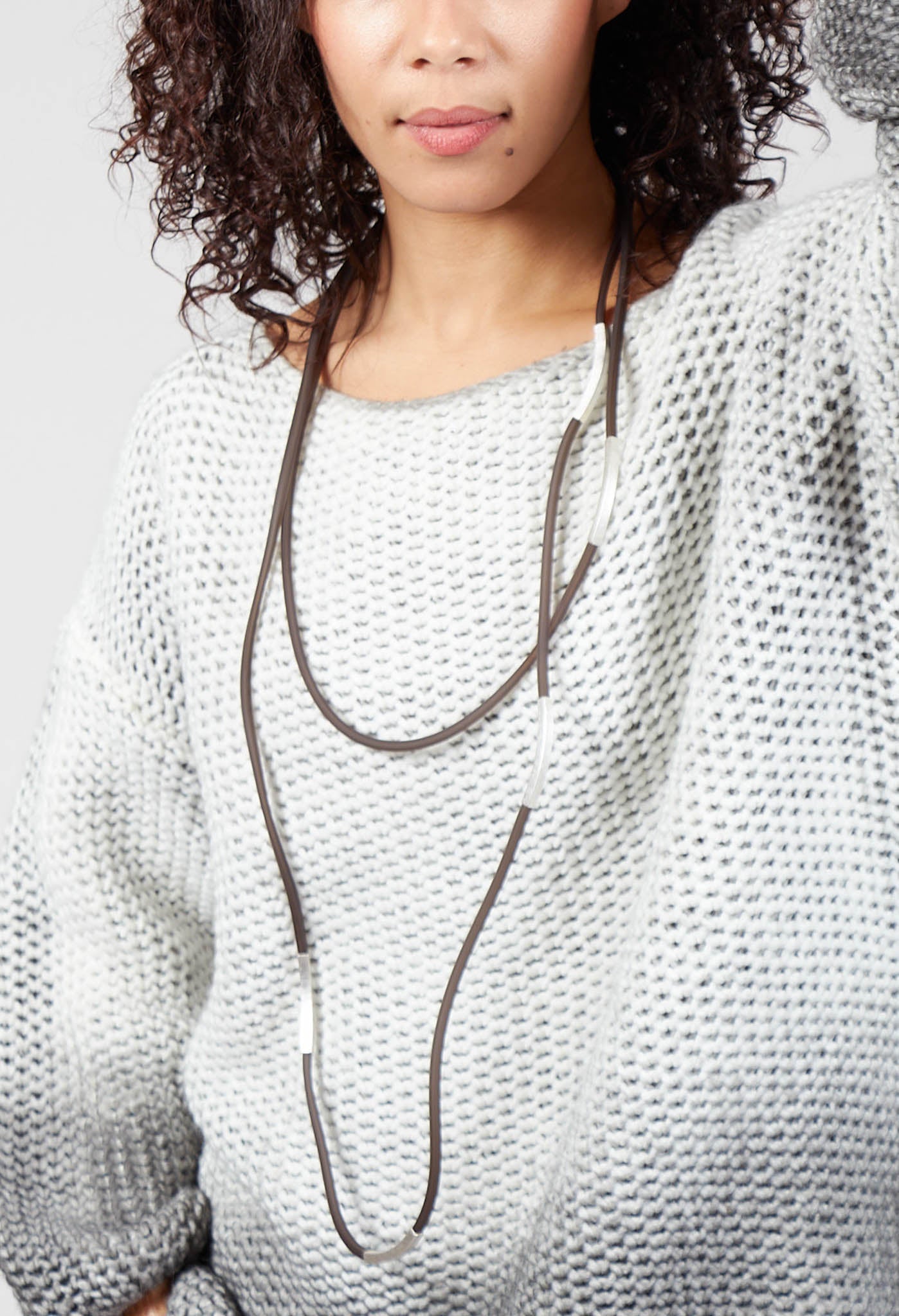 Leather Look Long Necklace in Brown